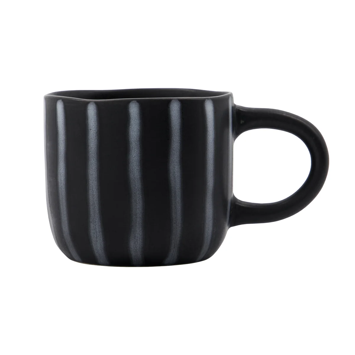 De Line mok van House Doctor is ideaal voor een ontspannen koffiepauze in de namiddag, gezellige thee met vrienden of een kopje thee in de avond. Deze zwarte steengoed mok is versierd met mooie strepen die perfect passen bij verschillende borden, kommen en schotels. De strepen voegen een vleugje frisheid toe aan elk effen servies en brengen een nieuw elan op tafel.