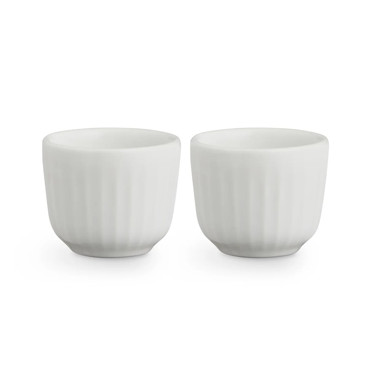 De Hammershøi eierdopjes van Kähler Design vormen een perfecte aanvulling op de gelijknamige serie van Hans-Christian Bauer. Verkrijgbaar in een praktische set van 2, de bekers met de karakteristieke groefdetails zijn een echte blikvanger op elke eettafel. Ze zijn niet alleen geschikt als eierhouder, maar ook als kleine dipkom voor specerijen of snoepjes.