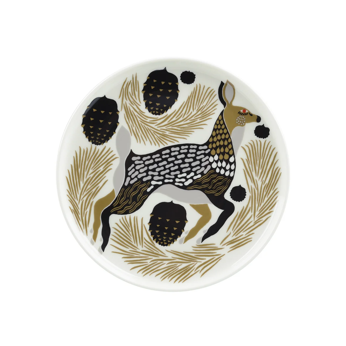 Oiva Peura Het bord van het Finse bedrijf maakt indruk met zijn uitnodigende hertmotief. Het bord is gemaakt van wit steengoed dat geschikt is voor de vaatwasser, oven, magnetron en vriezer.