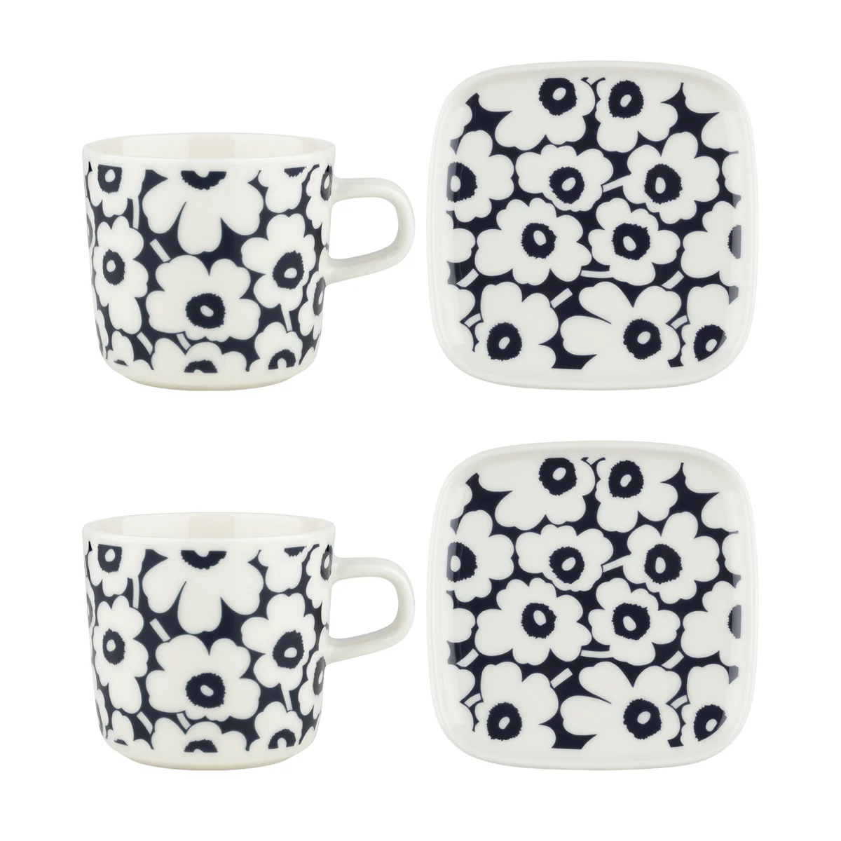 & Marimekko Oiva Pikkuinen Unikko mok met handvat Bord van . De set is gemaakt van wit steengoed en is daarom vaatwasmachine-, oven-, magnetron- en vriezerbestendig.