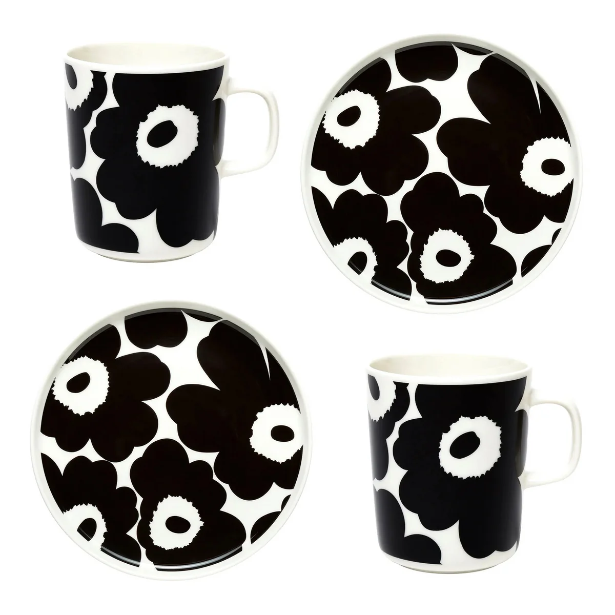 De dinerset bevat twee kopjes (2,5 dl), twee diepe borden (20,5 cm) en twee dinerborden (25 cm) - ideaal voor gezellige avonden of speciale gelegenheden. De ontbijtset bevat twee grote kopjes (4 dl) en twee borden (20 cm), perfect om de dag mee te beginnen. Beide sets zijn verpakt in een elegante doos met het Marimekko logo en zijn ook een prachtig cadeau.