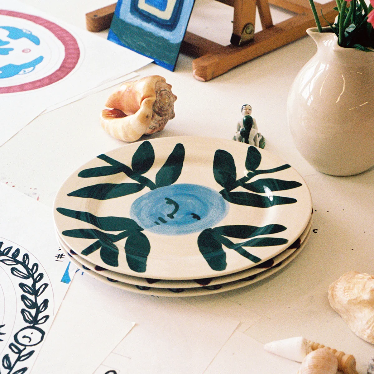 Het La Pittura bord van HAY is ontwikkeld in samenwerking met de Amerikaanse kunstenares Emma Kohlmann. Deze collectie handbeschilderde borden van keramiek brengt Kohlmanns speelse en expressieve ontwerpen direct in huis. De serie is geïnspireerd op historische keramiek en combineert kunst met praktisch nut, waardoor elke maaltijd een visuele ervaring wordt. De borden worden geleverd in levendige kleuren en zijn versierd met Kohlmann's kenmerkende motieven, waardoor de collectie een unieke, artistieke touch krijgt.