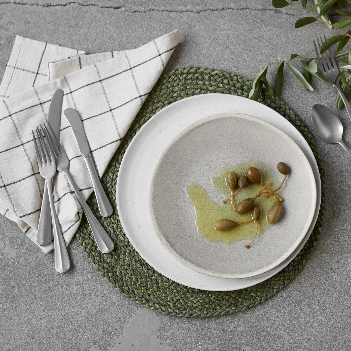 Dit grijze keramische bord van steengoed combineert tijdloze esthetiek met een praktische functie. Het matte glazuur en de onregelmatige vorm geven elk bord een unieke en charmante uitstraling. Het bord kan op verschillende manieren gecombineerd worden met ander keramiek en creëert een uitnodigende tafelsfeer die geschikt is voor zowel dagelijks gebruik als voor speciale gelegenheden.