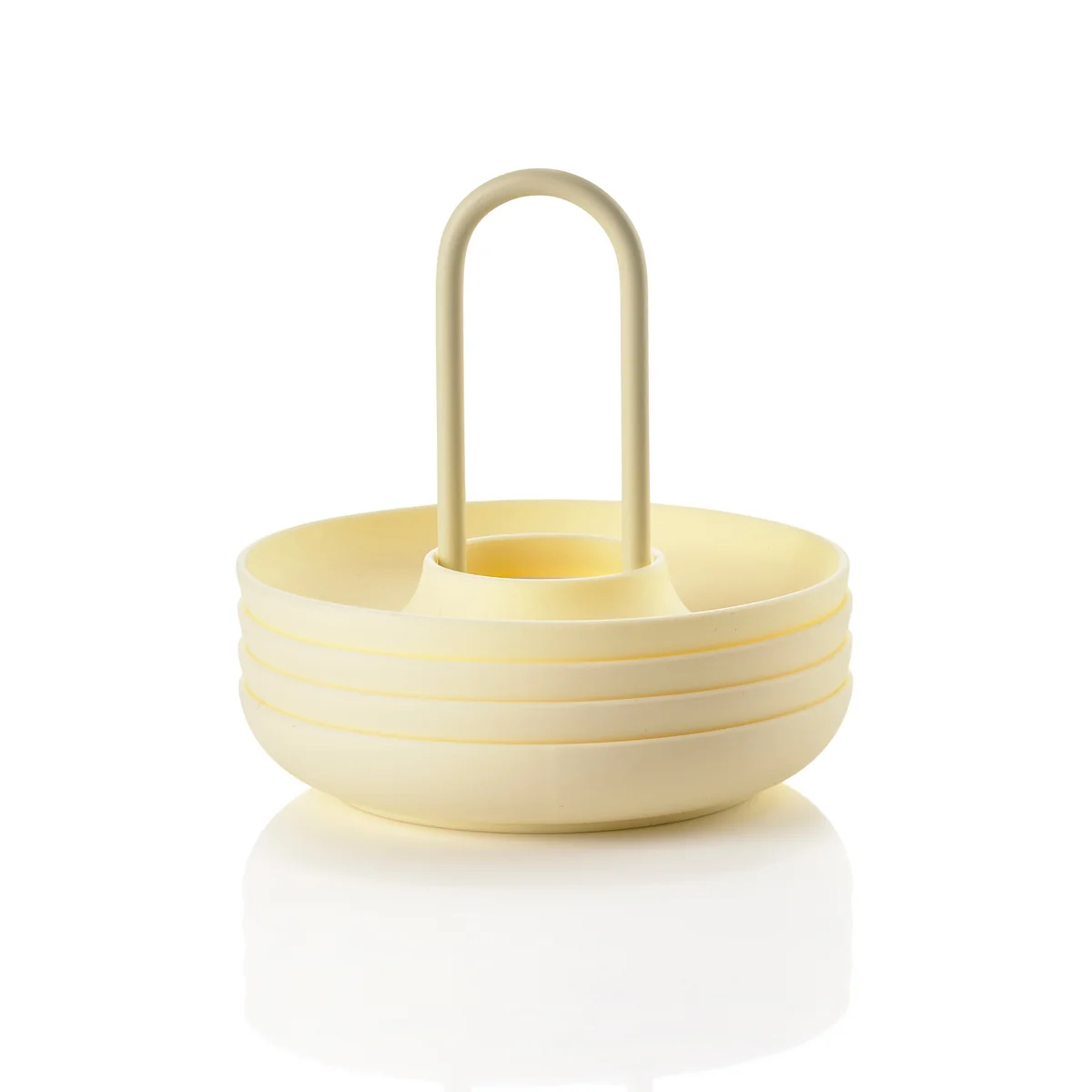 De vier eierdopjes in een houder uit de Singles serie van VE2 voor Zone Denmark kunnen met één hand naar tafel worden gebracht. De gebogen basis vangt zowel zout als eierschalen - en dus ook de aandacht van gasten. Functioneel en decoratief tegelijk zijn de eierdopjes met houder de perfecte aanvulling op elke ontbijttafel.