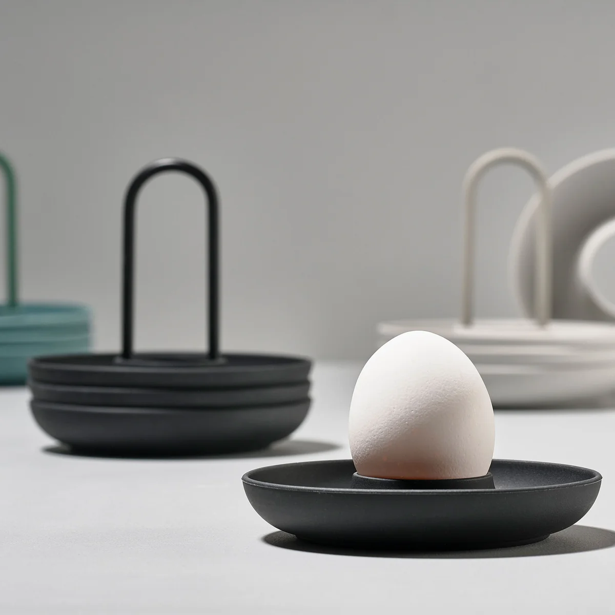 Eierdopjes en houders zijn gemaakt van siliconen en metaal en zijn verkrijgbaar in verschillende kleuren.