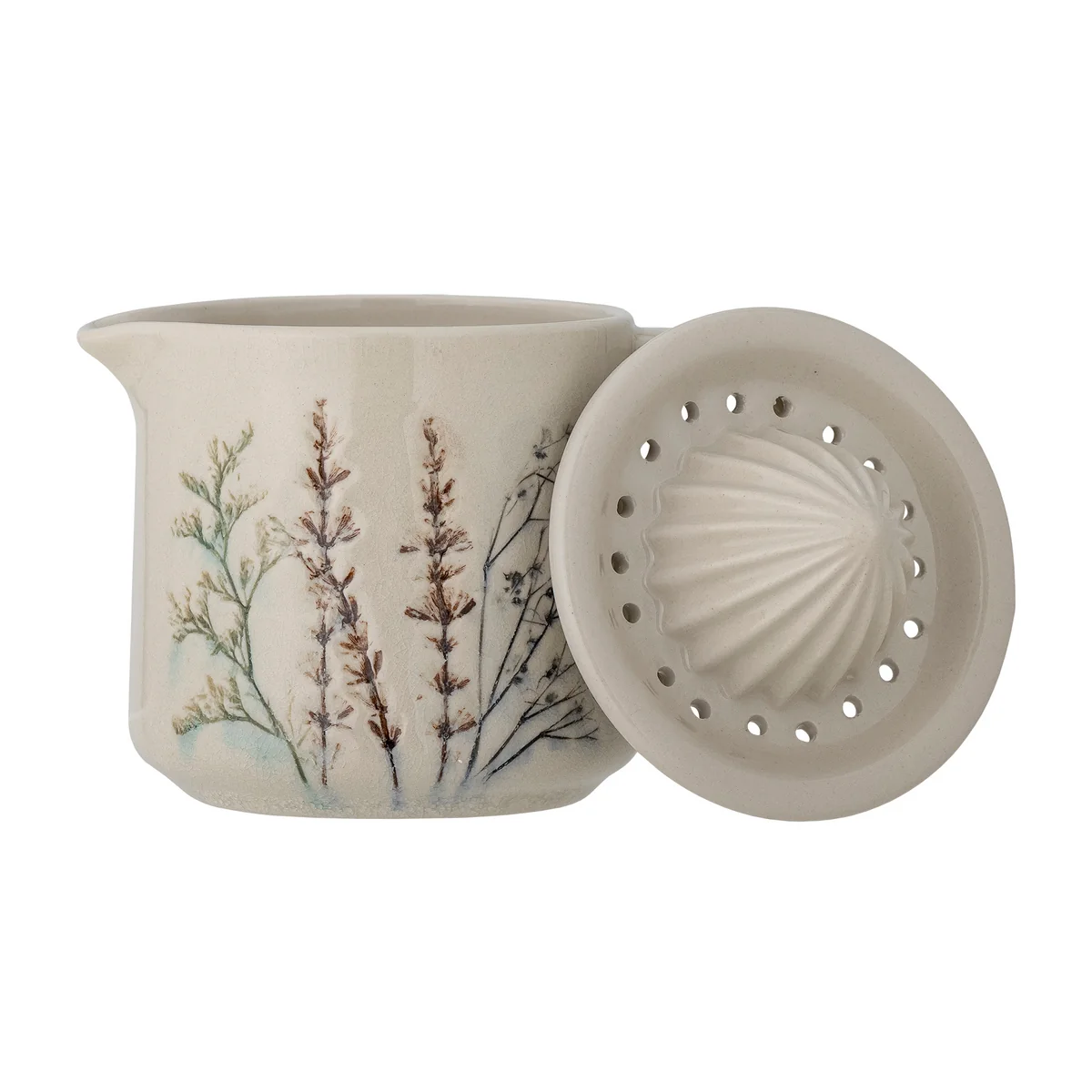 De citruspers van Bloomingville is een mooie citruspers van steengoed in natuurlijke kleuren, met een delicaat bloemmotief op het glazuur. De sapcentrifuge is handgemaakt en daarom is elk stuk uniek. Vaatwasmachinebestendig.