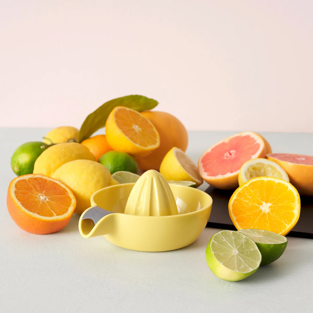 De JUICY De citruspers van ontwerper Rasmus Halfdan Breck voor Rig-Tig by Stelton is een optimale, praktische kleine helper in de keuken. Dankzij het sculpturale ontwerp van de compacte sapcentrifuge kunnen limoenen, citroenen en sinaasappelen moeiteloos worden geperst. De geïntegreerde zeef in de schenktuit laat het sap eruit druipen zonder pitten of pulp. De binnenkant van de JUICY De binnenkant van de citruspers heeft een glanzend oppervlak, waardoor fruitresten gemakkelijk kunnen worden verwijderd. De buitenkant, daarentegen, heeft een mat oppervlak. JUICY De citruspers kan gemakkelijk in twee delen in de vaatwasmachine worden gereinigd. De citruspers is gemaakt van zuiver, recycleerbaar materiaal.