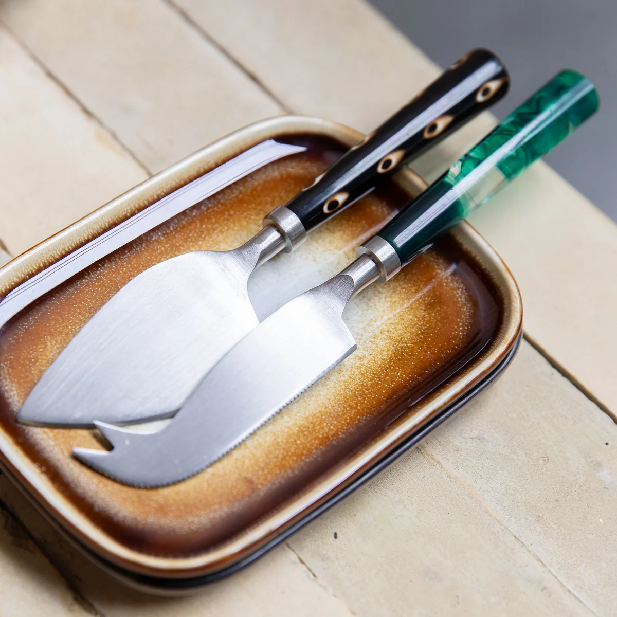 De lemmeten van de kaasmessen zijn gemaakt van eersteklas roestvrij staal, dat bekend staat om zijn duurzaamheid en roestbestendigheid. De handvatten zijn gemaakt van hout, dat niet alleen lekker in de hand ligt, maar ook een warme, natuurlijke uitstraling heeft. De set bevat verschillende kaasmessen, waaronder een hard kaasmes, een zacht kaasmes en een kaasmes met tanden. Elk mes is speciaal ontworpen voor de betreffende kaassoort om optimale snijresultaten te bereiken.