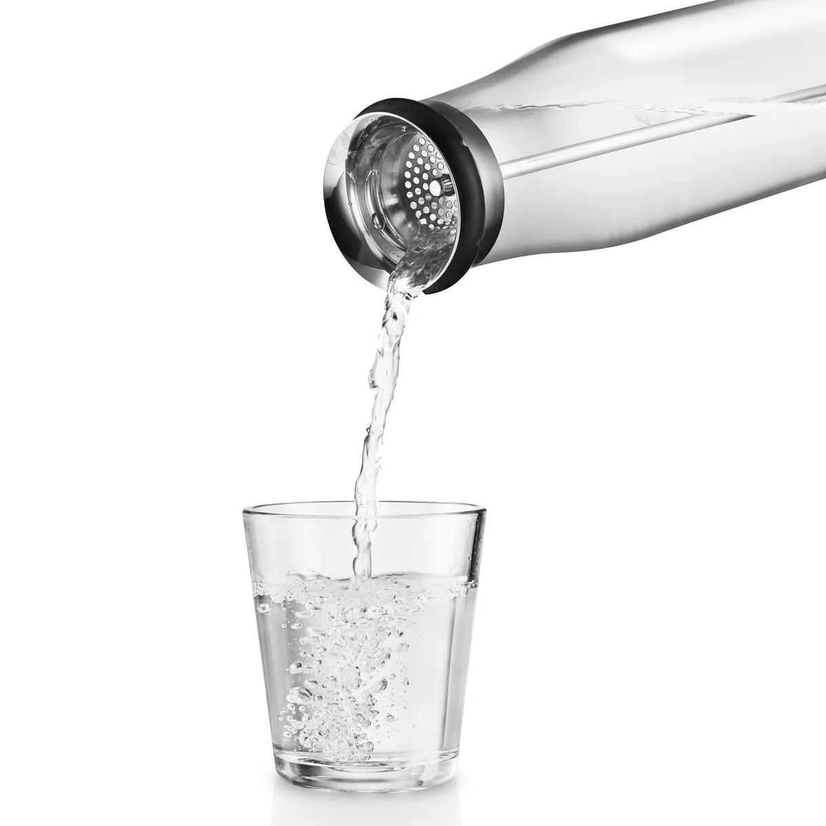 Dankzij de spies hebben de gekozen ingrediënten een vaste plaats in de karaf en drijven niet los zoals in andere flessen. Zelfs kleine fruit- of groentezaden blijven in de karaf van Eva Solo achter door een ingebouwde filter in het deksel. En stukken fruit en andere ingrediënten kunnen na het drinken gemakkelijk uit de fles worden verwijderd en in de fles worden vervangen, dankzij het spiesje, indien nodig.