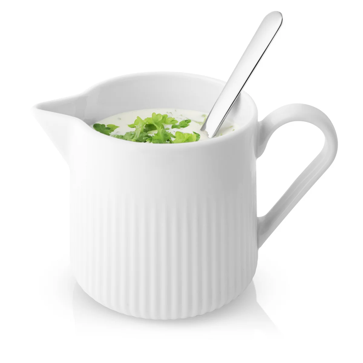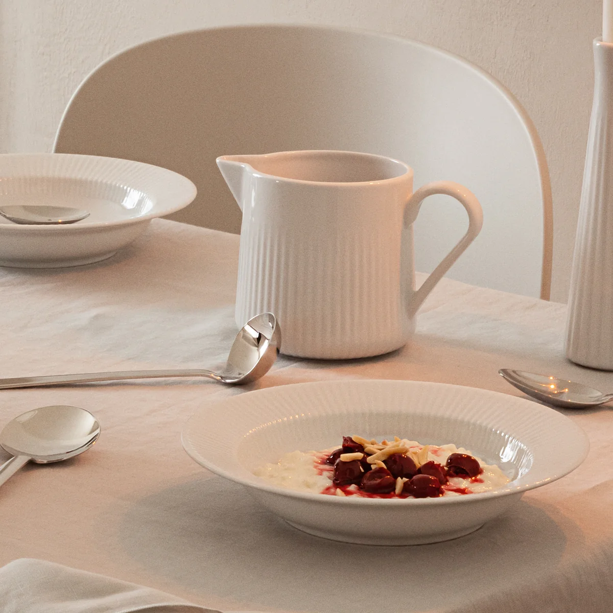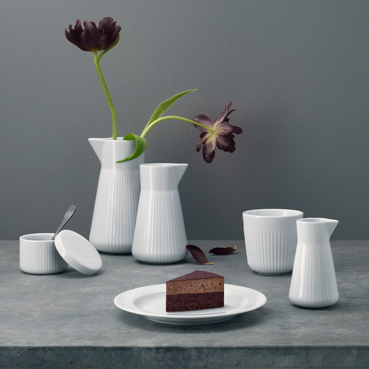 Naast de andere onderdelen van de schotelenserie is de kruik gemaakt van fijn porselein en is dus niet alleen tijdloos van ontwerp, maar ook gemakkelijk te reinigen, zodat de porseleinen kan na gebruik gemakkelijk in de vaatwasser kan worden gereinigd.