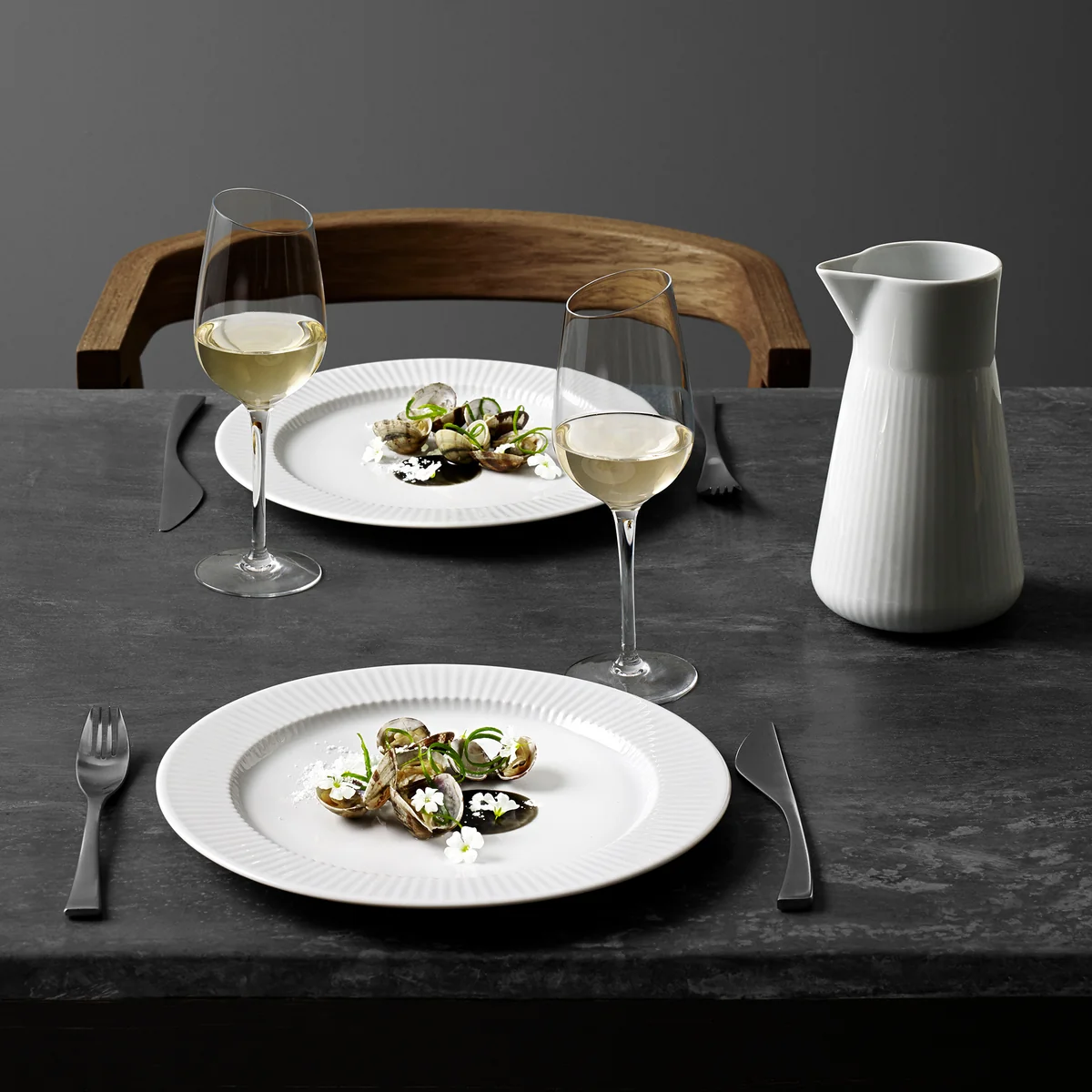 De Legio Nova karaf van Eva Trio siert elke tafel en is bijzonder geschikt voor melk, sap of water. De Legio Nova tafelgerei serie voorzien van groeven, die een elegant frame vormen voor het eten of drinken.