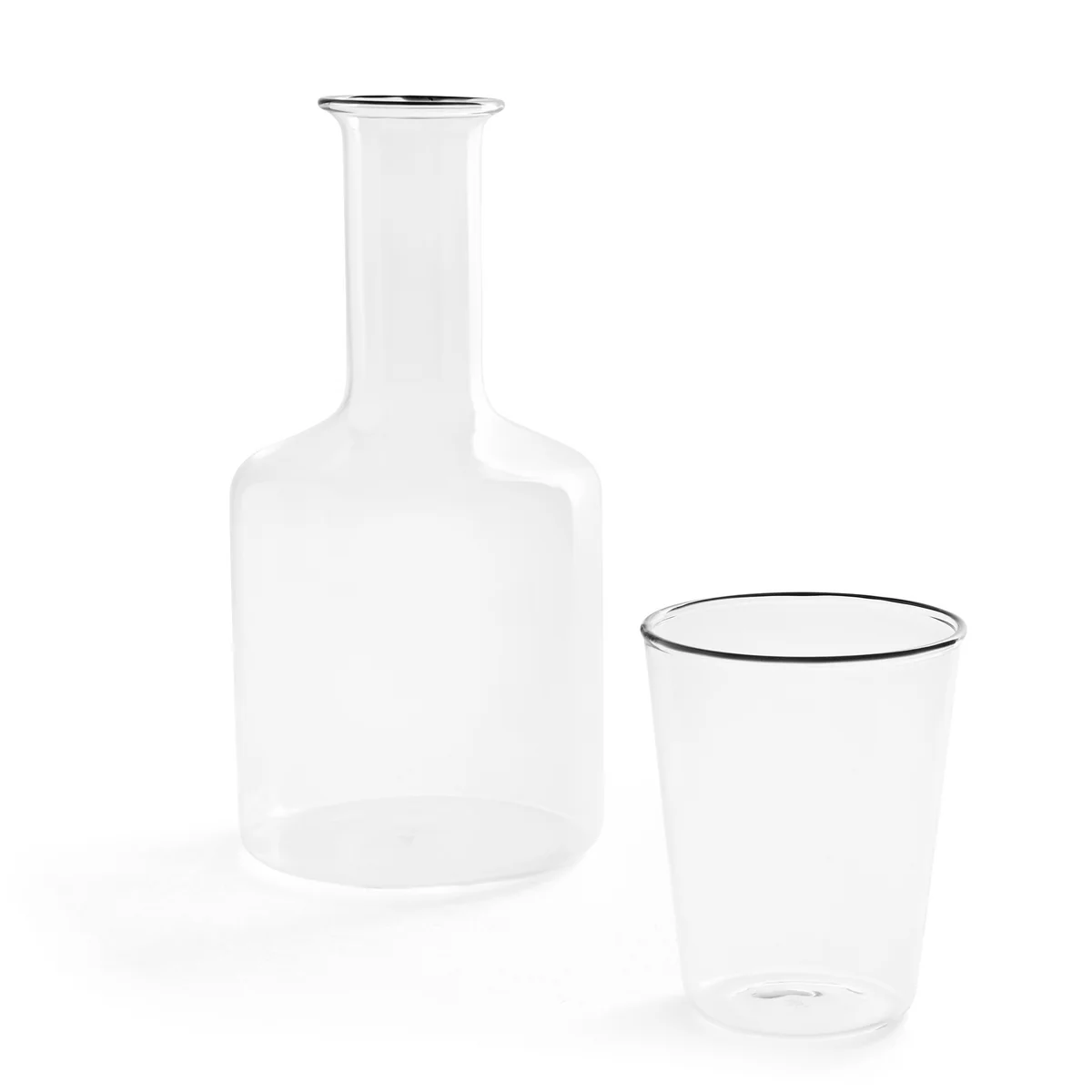 De Rim karaf van het Deense label HAY is een uiterst decoratieve karaf met zijn slanke hals en contrasterende rand. Het kan prachtig gebruikt worden voor het serveren van water, wijn en co. De Rim gemaakt van bestendig borosilicaatglas en ideaal te combineren met de drinkglazen Rim drinkglazen .