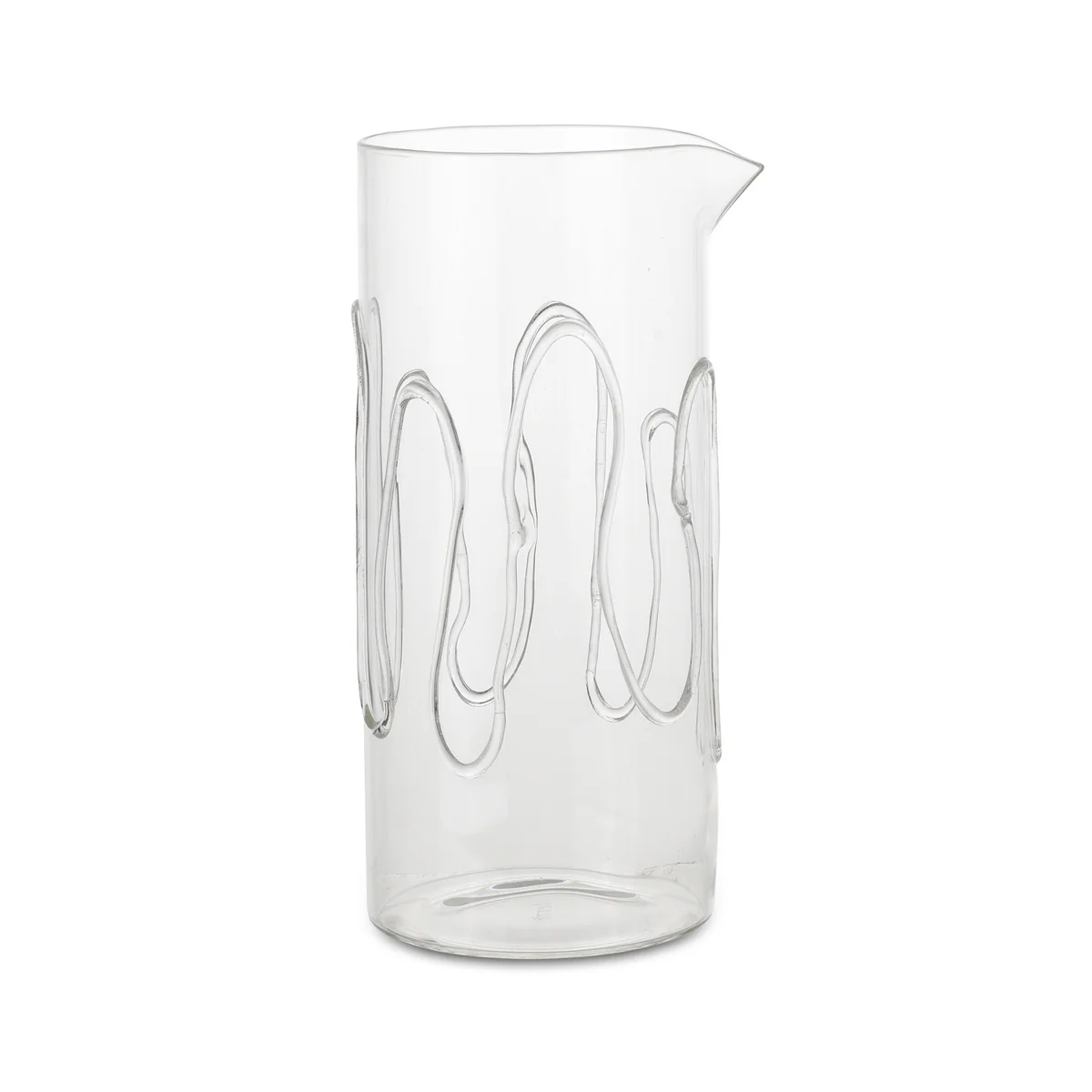 De Ferm Living Doodle karaf is een meesterwerk van hedendaagse Scandinavische esthetiek en functionaliteit. Met een elegant gebogen, handgemaakt ontwerp en een rijk versierd, handgetekend patroon geïnspireerd op de wereld van Zen, springt deze karaf in het oog van iedereen. Het is niet alleen een prachtig kunstwerk voor je tafeldecoratie, maar ook uiterst praktisch voor dagelijks gebruik. Hij is gemaakt van hoogwaardig glas en houdt je favoriete drankjes fris en stijlvol. De Doodle karaf van Ferm Living belichaamt de samensmelting van kunst en het dagelijks leven en geeft je huis een unieke touch. Ontdek de harmonie van vorm en functie in een tijdloos ontwerp dat het hart van elke estheet sneller doet kloppen.