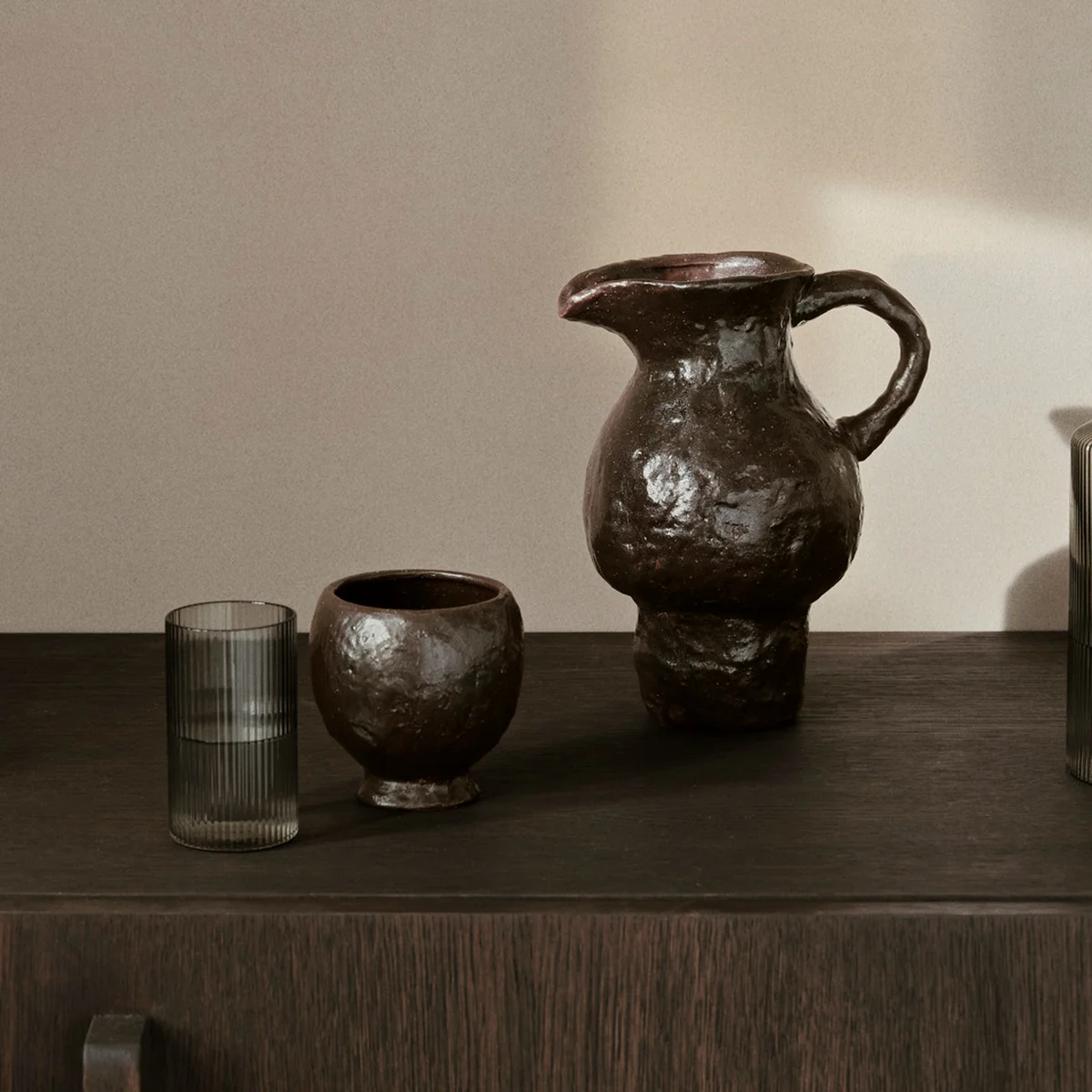 De Doro kan van Ferm Living is een mix van klassieke charme en moderne elegantie. De kan is gemaakt met veel aandacht voor detail en biedt een perfecte balans tussen vorm en functie.