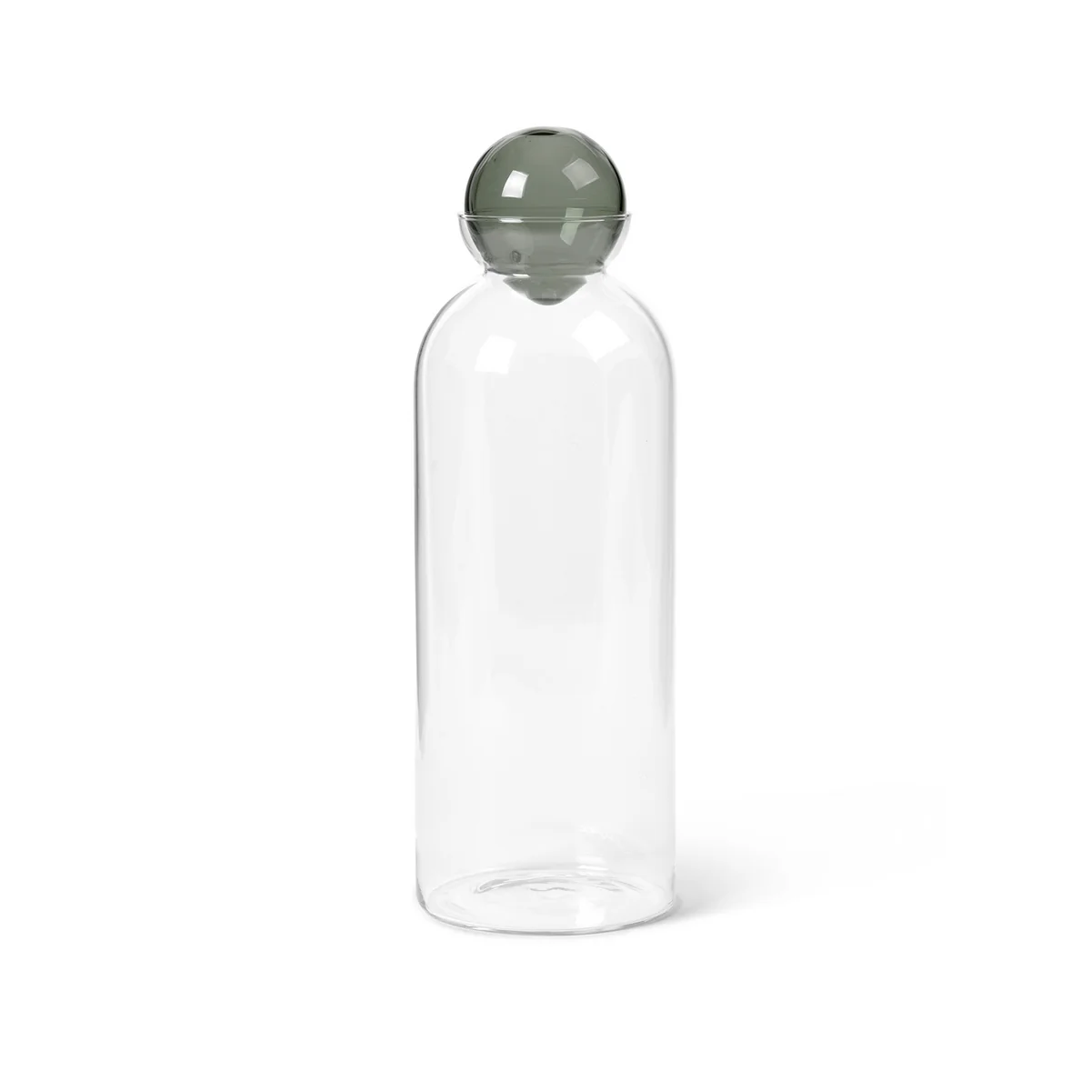 De bolvormige gekleurde glazen kurk ligt als een luchtbel op de opening van de mondkaraf, die een elegant schenkvat is voor water, sap of andere dranken. Het is ontwikkeld voor dagelijks gebruik en kan worden gecombineerd met de bijpassende glazen om een elegant glasservies te creëren.