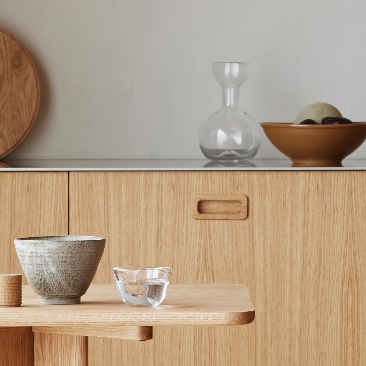Pinho door Linnea Ek Blæhr voor Form & Refine is een eerbetoon aan de eeuwenoude kunst van het glasblazen, wat te zien is aan het karakteristieke delicate, licht oneffen oppervlak en de kleine belletjes. De karaf is geïnspireerd op tijdloze vormen en dient zowel als praktische kan voor dagelijks gebruik als decoratief stuk wanneer hij niet in gebruik is.