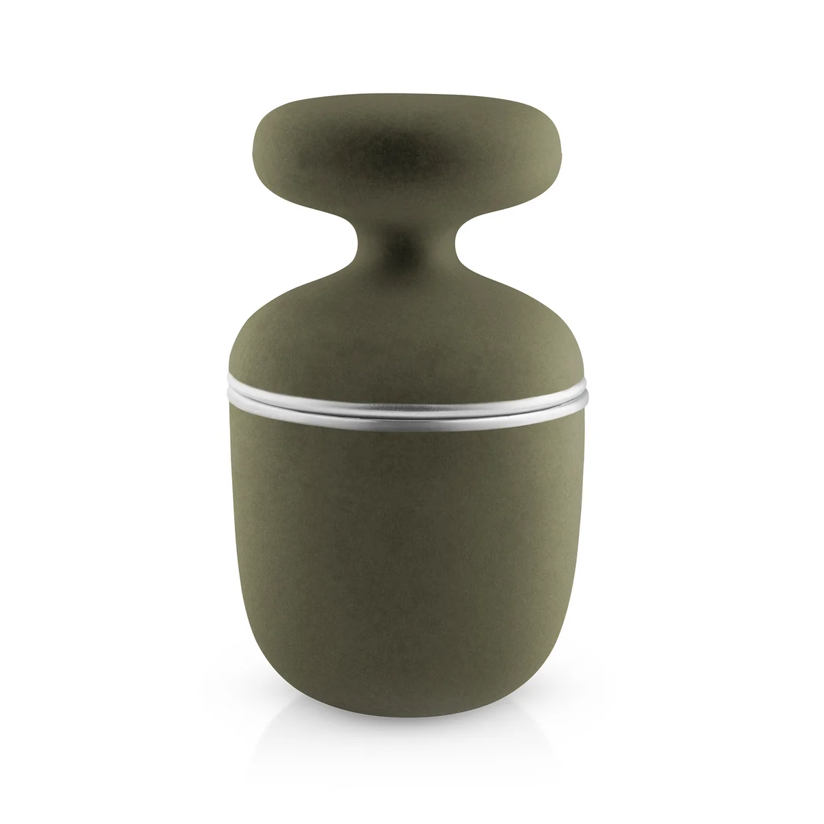 De Green Tool Kruidenvijzel van Eva Solo maalt en vermaalt specerijen met een eenvoudige draai. De gemalen specerijen worden in de container opgevangen. De vijzel overtuigt door zijn ruimtebesparende ontwerp en is gemakkelijk te hanteren dankzij een handvat dat heerlijk in de hand ligt. Nadat het werk gedaan is, wordt de mortel van de Green Tool collectie kan gemakkelijk in de vaatwasmachine worden gereinigd.
