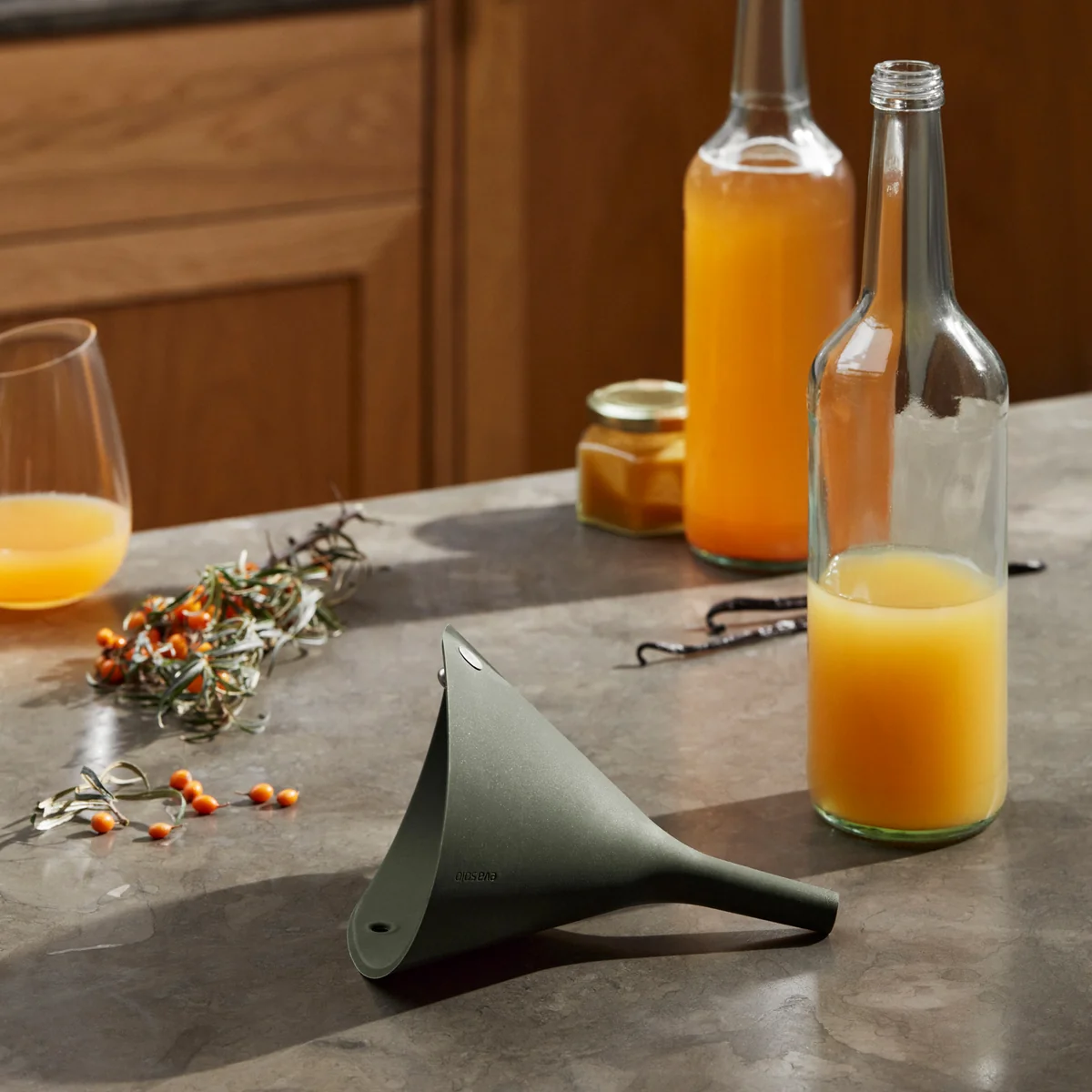 De opvouwbare trechter is zo ontworpen dat hij kan worden geopend als dat nodig is en kan worden opgevouwen om ruimte te besparen als hij niet wordt gebruikt. Dit maakt hem ideaal voor kleinere keukens of voor op reis.