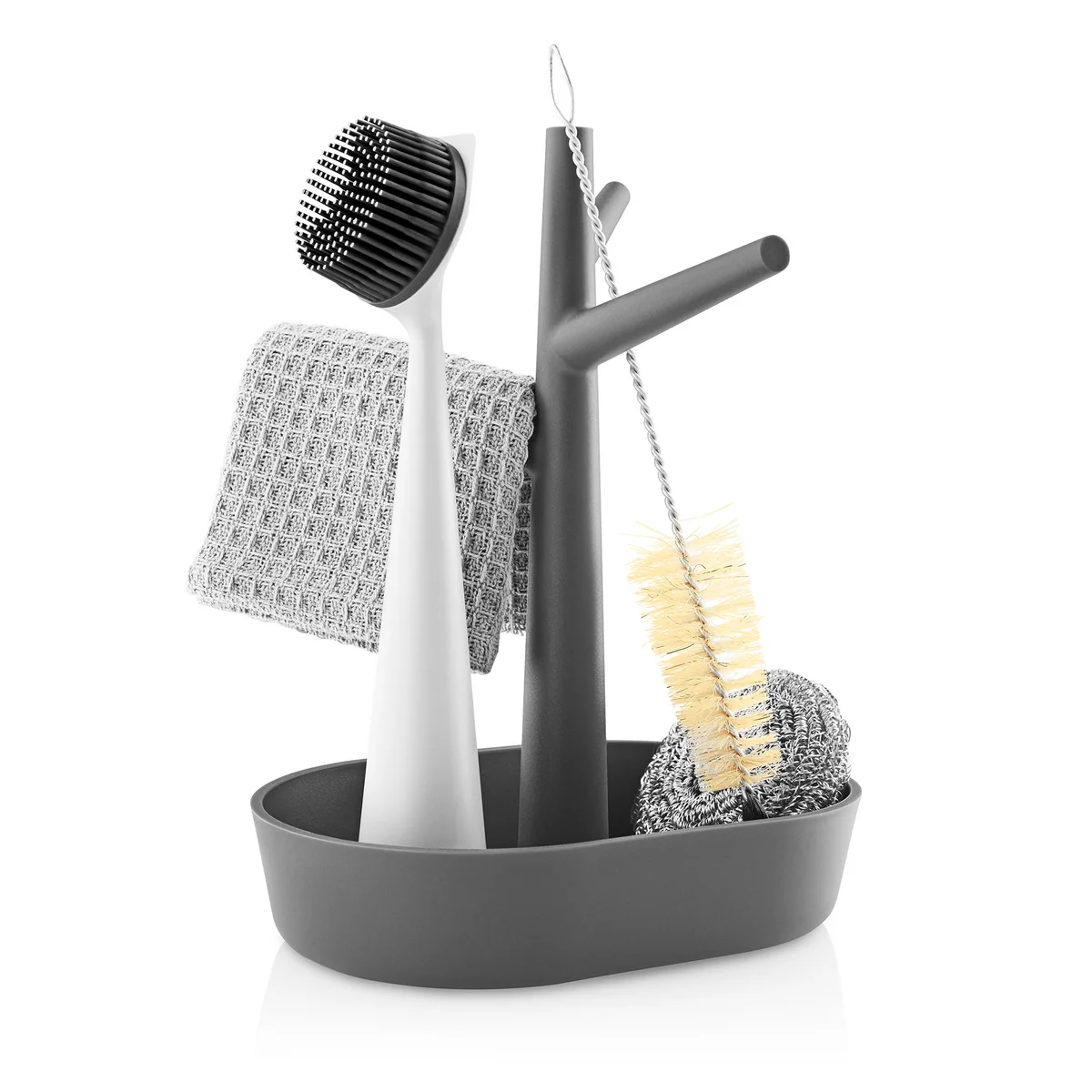 De Kitchen Organiser van Eva Solo brengt orde in de keuken. Naast de gootsteen biedt het opbergrek plaats aan vaatdoekje, afwasborstel en afwasmiddel. Bovendien biedt de organiser een hygiënische oplossing voor het drogen van vaatdoeken in de lucht. Het overtollige water dat in de lekbak druppelt, kan er gewoon worden afgegoten. Op die manier blijft de organisator hygiënisch.