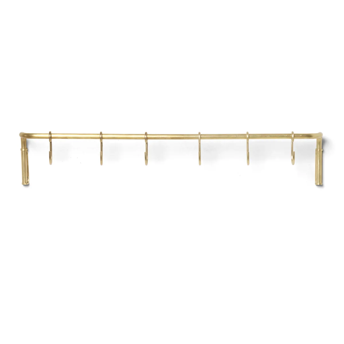 De keukenpaal is gemaakt van messing, optioneel zwart gelakt, en wordt geleverd met 6 haken om verschillende dingen aan op te hangen. Met een lengte van ca. 55 cm biedt de bar voldoende ruimte en past ook in kleinere keukens in moderne stadsappartementen.