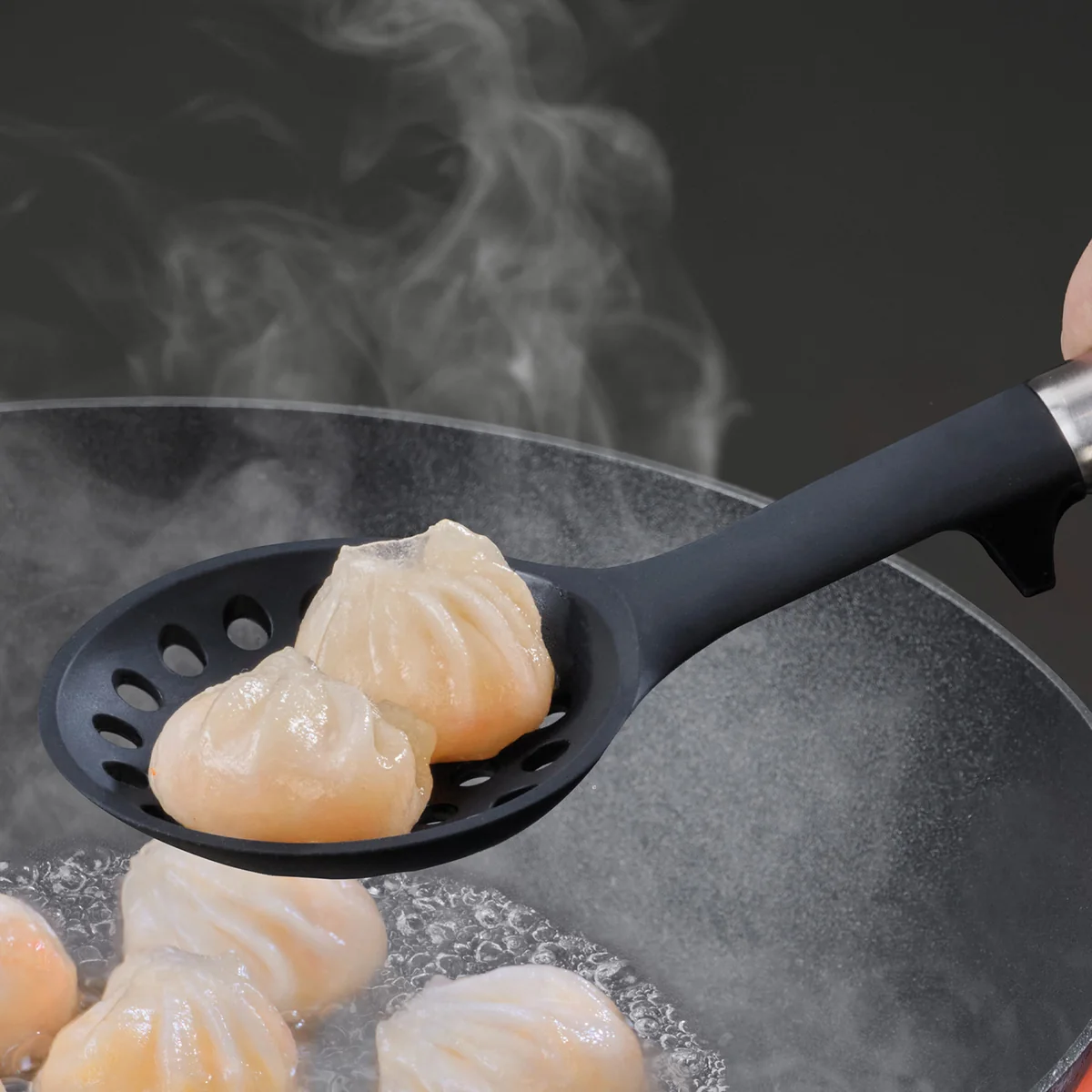 De set bevat een vaste draaier, een opscheplepel en een tang - drie essentiële keukenhulpen die ieders kookkunsten naar een hoger niveau tillen.
