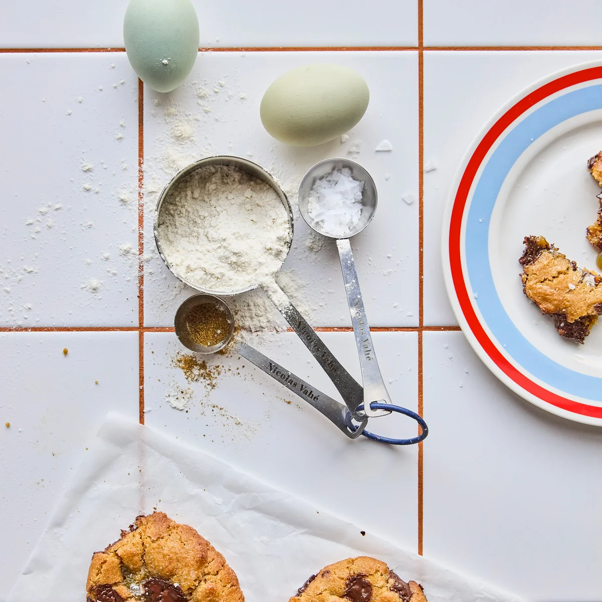 De Measure maatlepelset van Nicolas Vahé harmonieert functionaliteit en design. Hij is gemaakt van hoogwaardig roestvrij staal en maakt nauwkeurig afmeten mogelijk voor bakken, koken en creatieve keukenideeën. De blauwe verbindingsring houdt de drie maatlepels altijd bij elkaar en bij de hand en voegt een decoratief kleuraccent toe. Het tijdloze zilveren ontwerp geeft je keuken een professionele uitstraling, terwijl het vaatwasserbestendige ontwerp schoonmaken moeiteloos maakt.