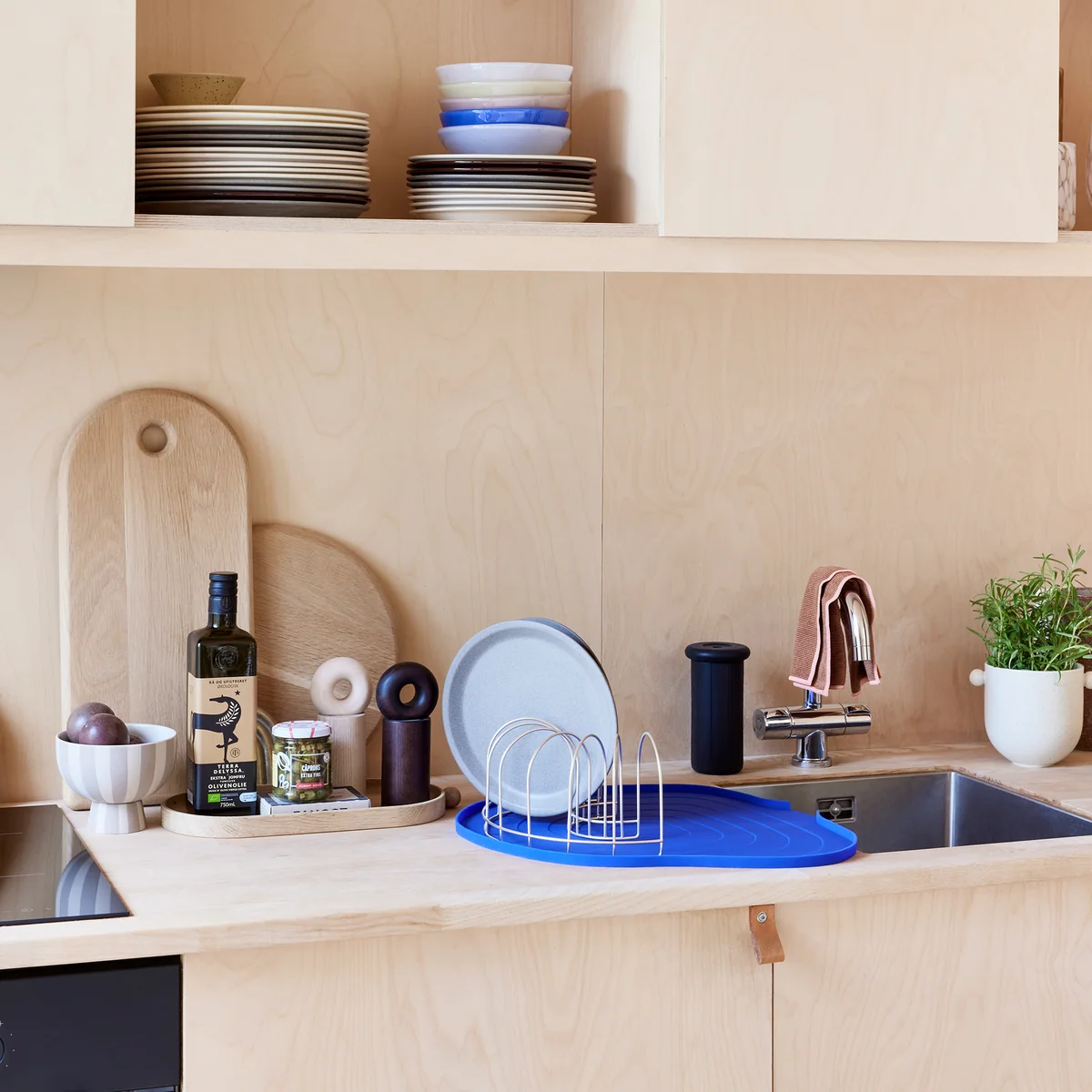 Gemaakt van hoogwaardige siliconen, is de organisch gevormde afdruipmat zowel duurzaam als functioneel. De zachte en plooibare textuur is perfect om de vaat op zijn plaats te houden en het werkblad te beschermen tegen overtollig water en krassen.