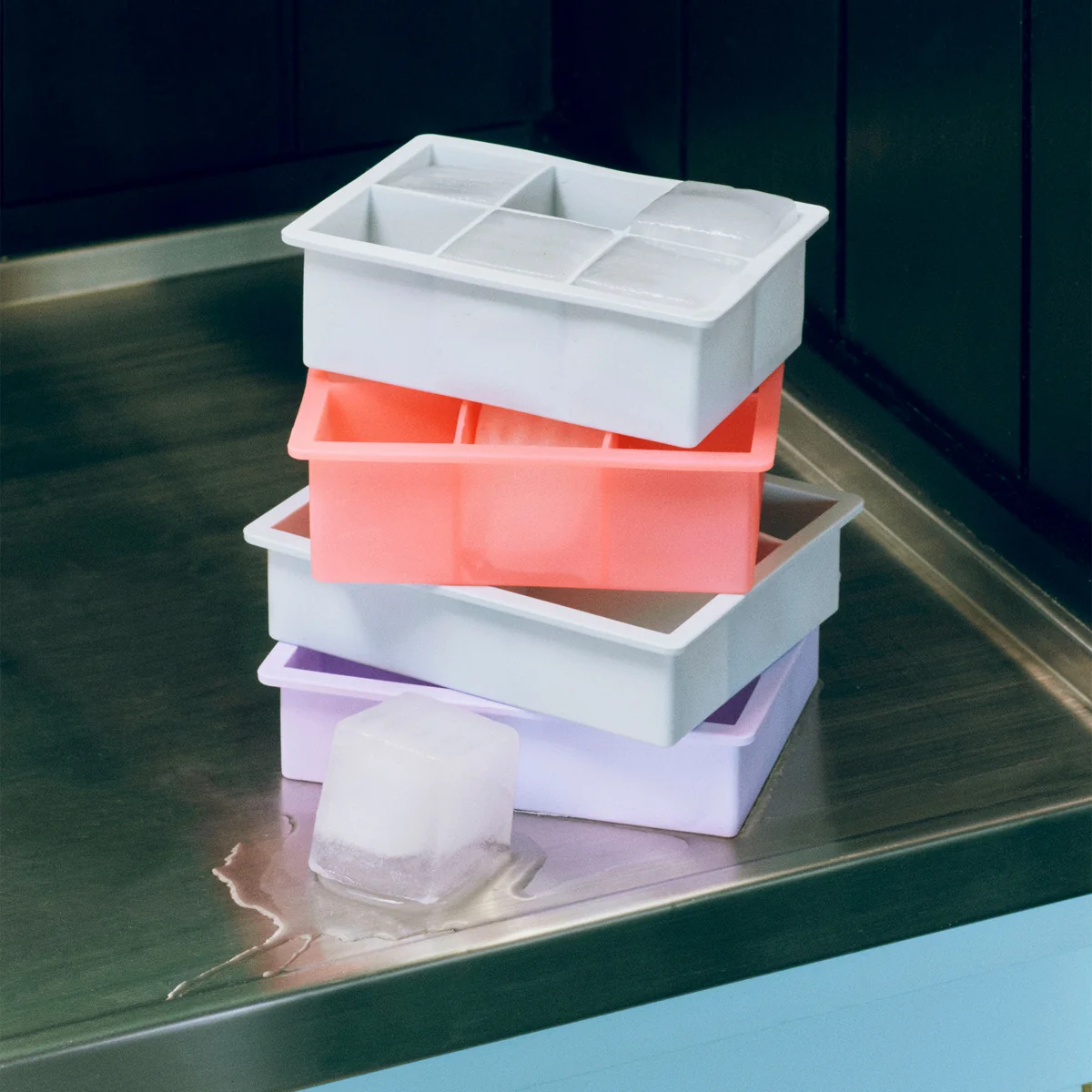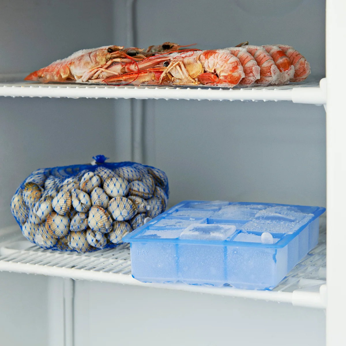 De ijsblokjesmakers uit het assortiment HAY Kitchen Market hebben een capaciteit van 12 ijsblokjes in een eenvoudig en compact blokjesontwerp of 8 in een ronde vorm. Dit zorgt voor een perfecte cocktailavond en de perfecte manier om witte wijn te koelen. De ijsblokjesmaker is gemaakt van flexibel en slijtvast silicone, waardoor de ijsblokjes gemakkelijk loslaten.