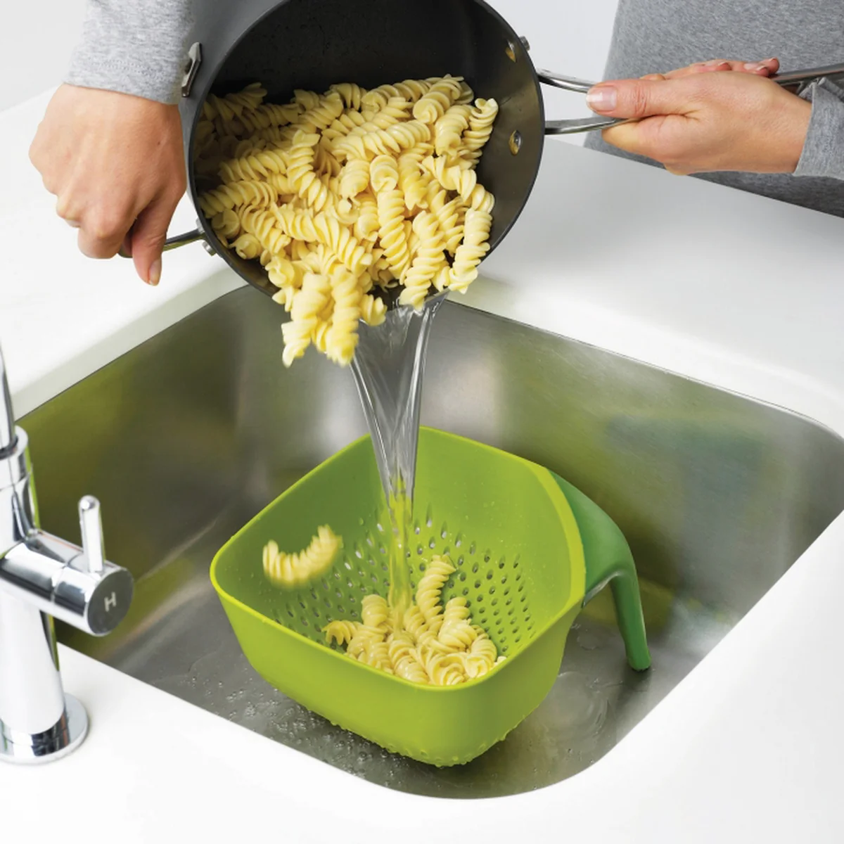 De grip is uiterst ergonomisch en zorgt ervoor dat hij ook op gladde oppervlakken zoals de spoelbak stevig staat. Het favoriete materiaal Joseph Joseph Joseph Joseph gebruikt polypropyleen garandeert een lange levensduur en weerstand tegen schotelzeep.