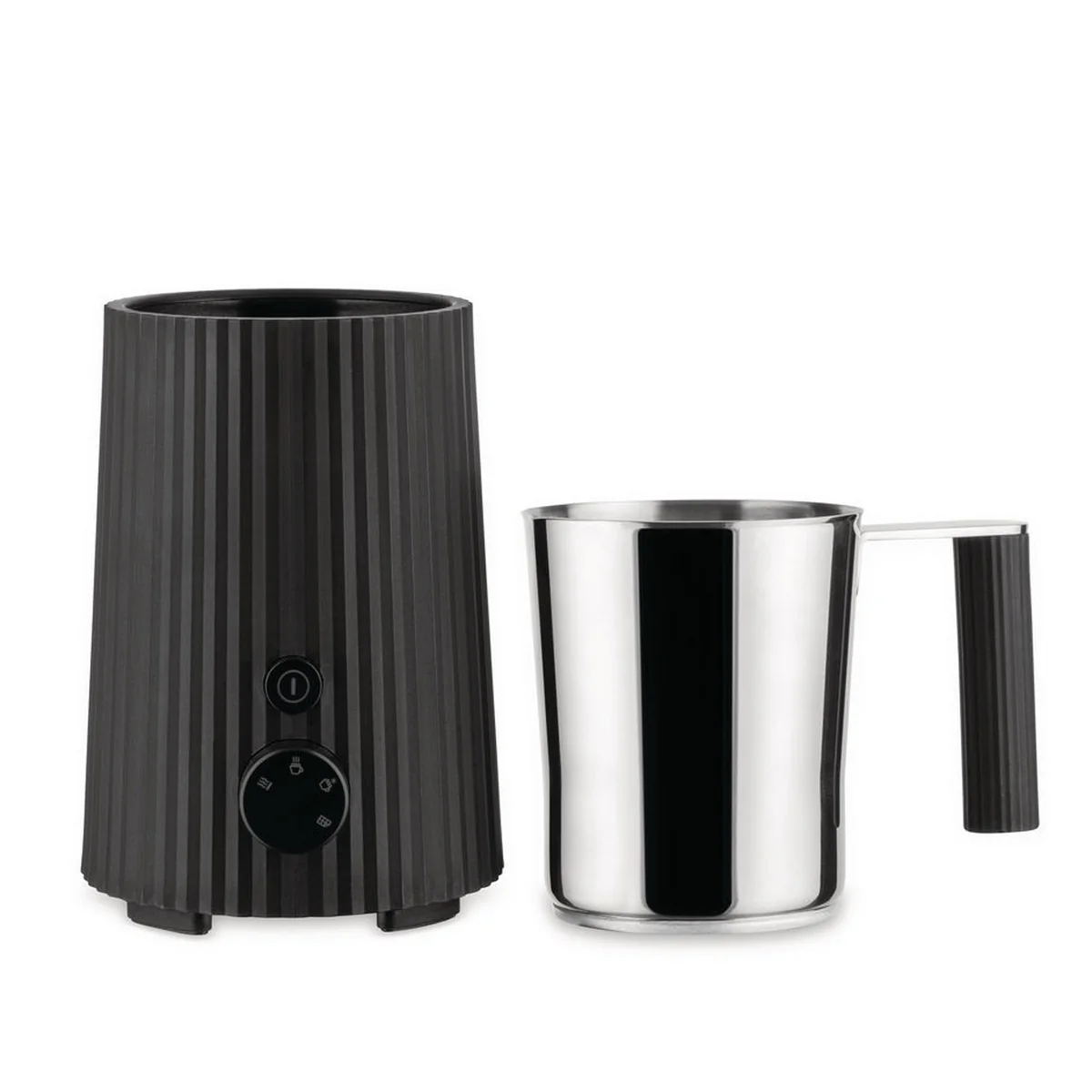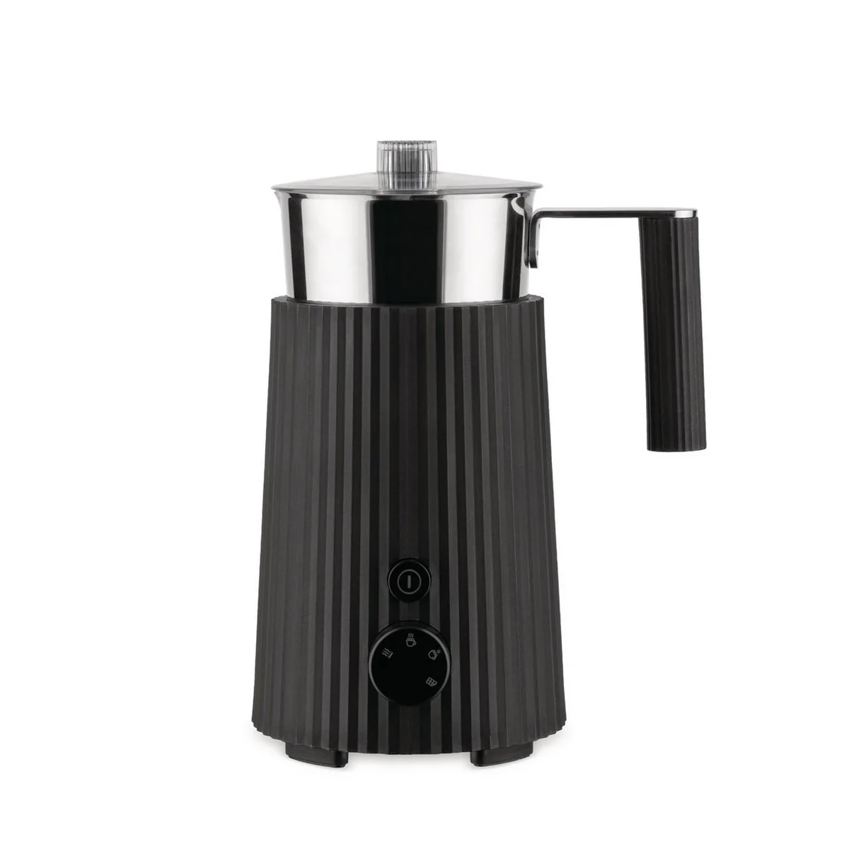 De Plissé melkopschuimer van Alessi combineert een glanzend en architectonisch ontwerp met een functionele eenvoud in het dagelijks leven. Michele De Lucchi mixt geselecteerde vormen en materialen en geeft ze een geplooid uiterlijk om ze een artistiek tintje te geven. Zo gebruikt hij een methode die in veel mode- en kunststijlen wordt gebruikt om materialen volume en opvallende afmetingen te geven.