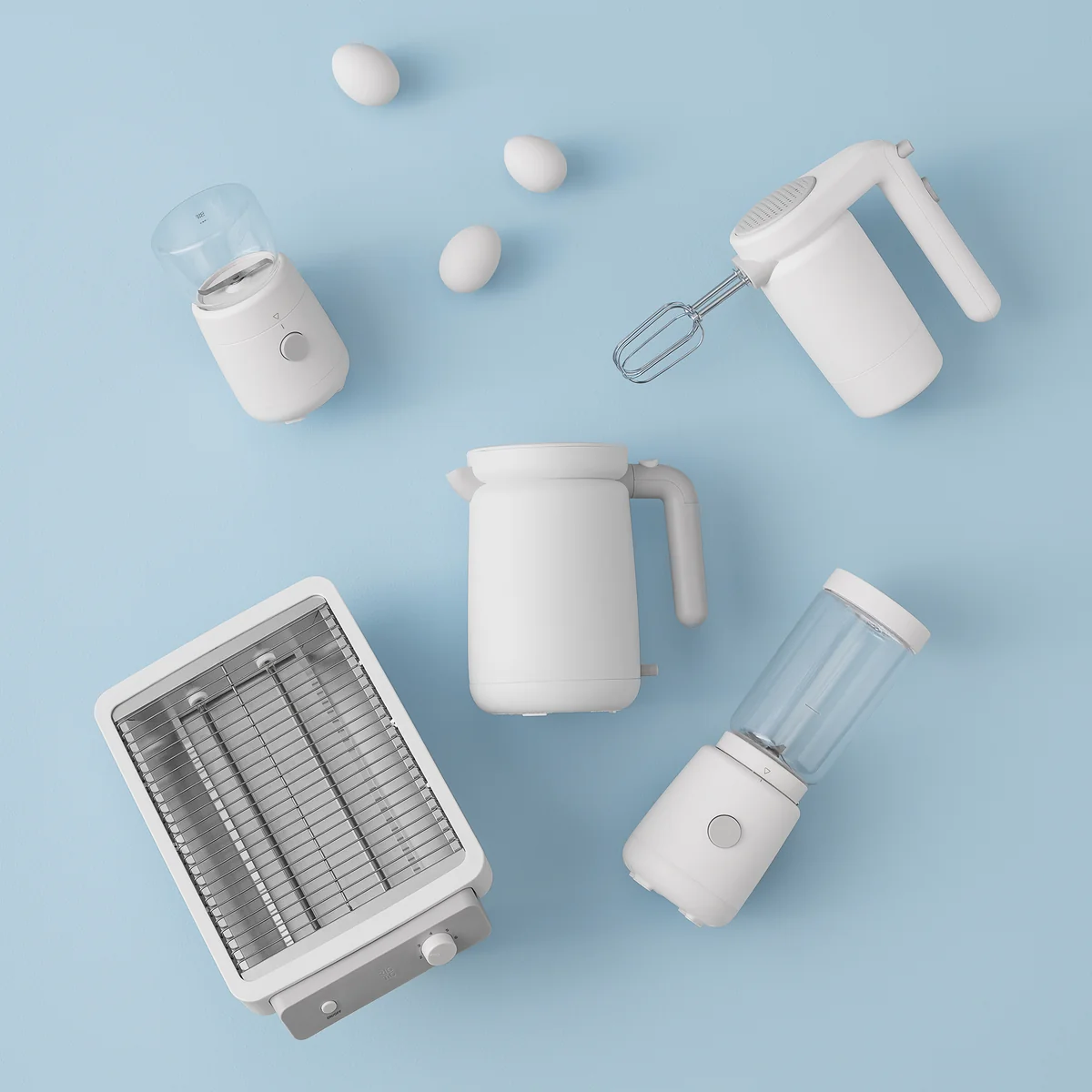 Naast dit product heeft het ontwerpduo Unit 10 ook een waterkoker , een staande mixer , een handmixer en een koffiemolen ontworpen voor Stelton .