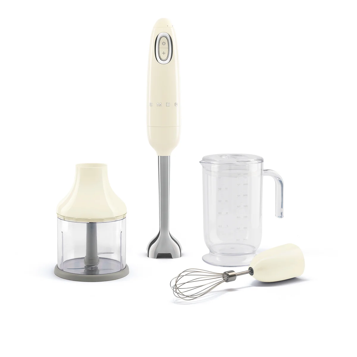 De staafmixerset HBF03 van Smeg ziet er niet alleen bijzonder modern en hoogwaardig uit, maar vult de optische kenmerken aan met zijn functionele uitmuntendheid. De staafmixer is praktisch en veelzijdig: in een handomdraai tovert de handige staafmixer, met een vermogen van 700 watt, de perfecte consistentie voor soepen of luchtige desserts tevoorschijn. Het is een prachtig geschenk voor een nieuwe keuken of als aanvulling op uw eigen keukenkastje. Het apparaat heeft een uitneembare roestvrijstalen voet.