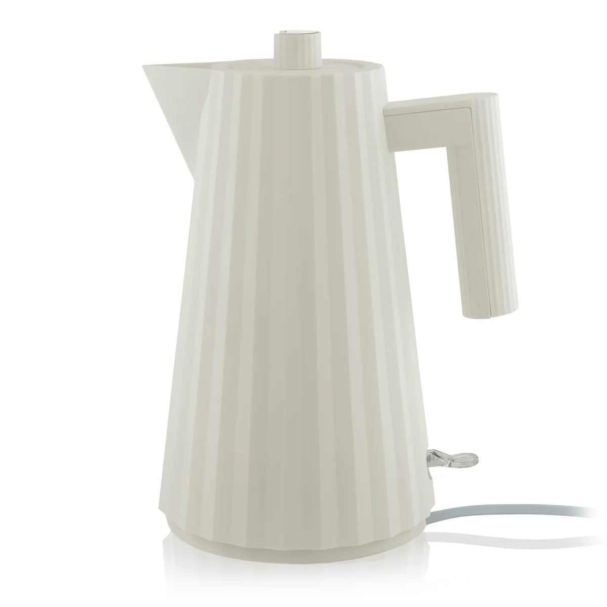 De plisséketel met een inhoud van 1. 7 liter, gemaakt van thermoplastische hars, doet denken aan een jurk gemaakt door een modeontwerper. In verschillende kleuren wordt het een decoratief object op het werkblad en een functionele blikvanger in elke keuken.