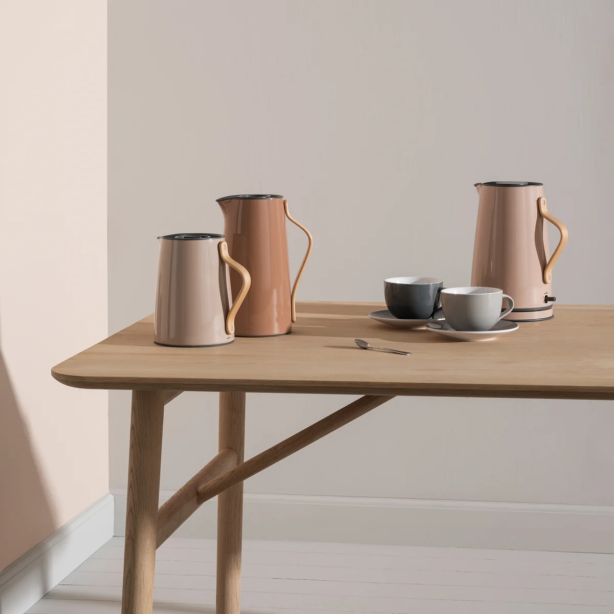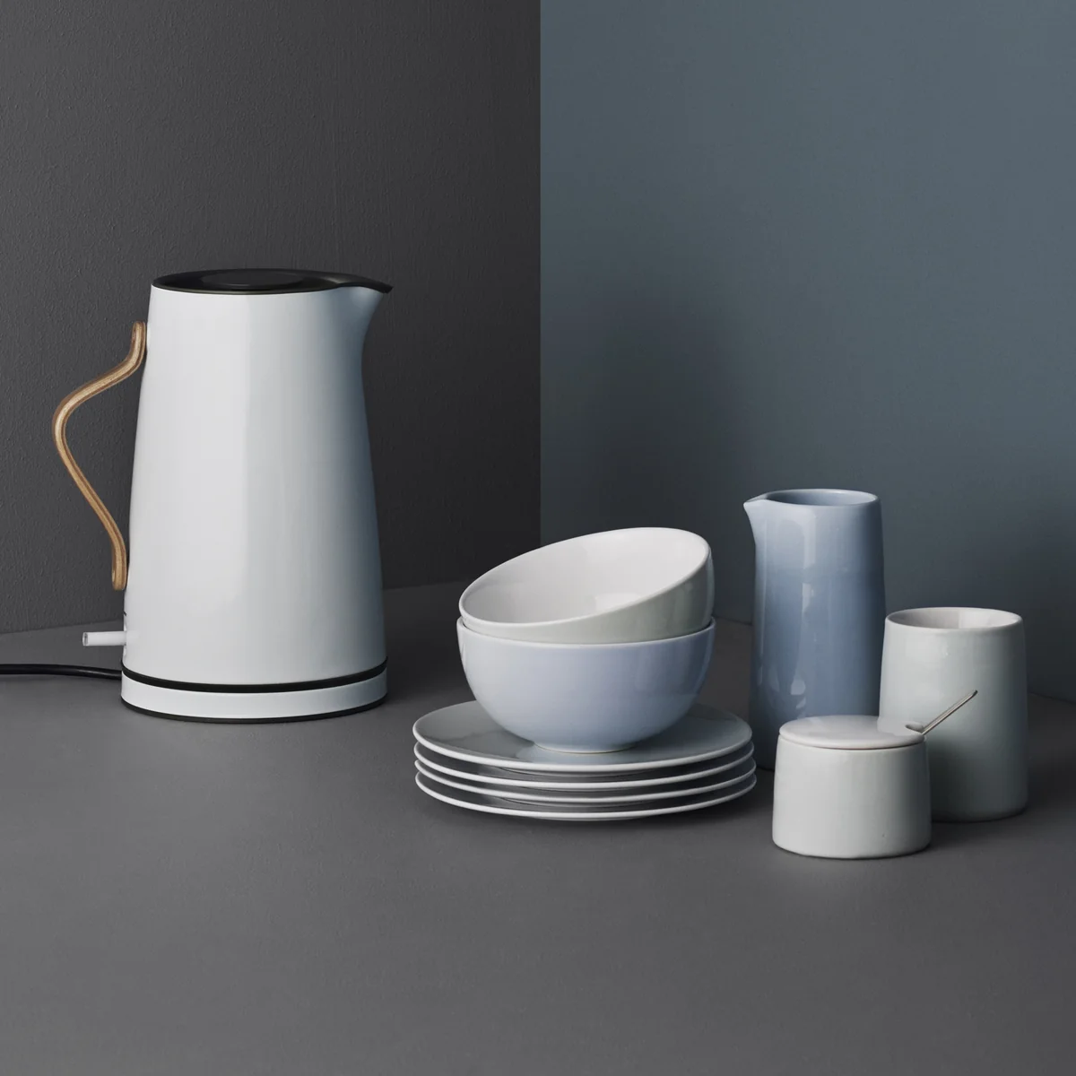 De ketel in de verschillende kleuren past perfect bij de andere toon-op-toon kleuren van de rest van het Emma assortiment. Het ontwerpduo HolmbäckNordentoft heeft de Emma-waterkoker van Stelton ontworpen, een keukenapparaat dat zo mooi is dat het direct op tafel geplaatst kan worden.