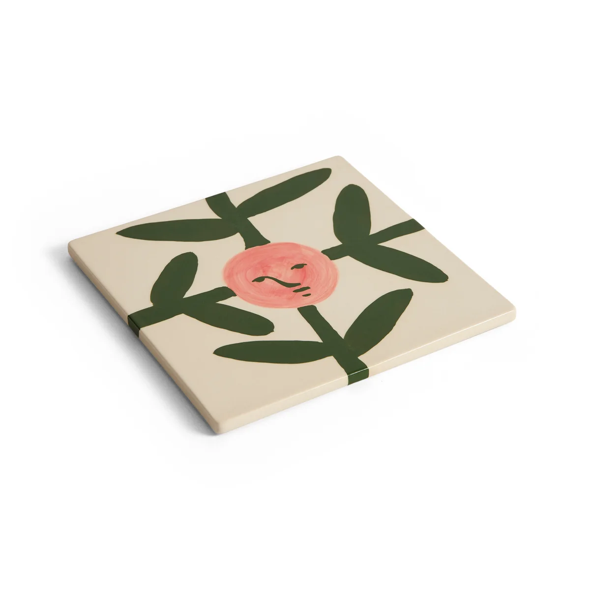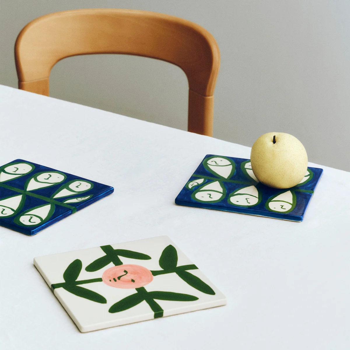 De La Pittura onderzetter uit de gelijknamige collectie HAY is ontworpen in samenwerking met de Amerikaanse kunstenares Emma Kohlmann. Dit handbeschilderde accessoire van keramiek brengt Kohlmanns speelse en expressieve ontwerpen in elk huis. De onderzetter beschermt oppervlakken tegen hete potten en pannen en is tegelijkertijd een kunstobject. Met levendige kleuren en opvallende motieven is het niet alleen een aanvulling op de tafel, maar voegt het ook een artistiek tintje toe aan speciale gelegenheden en alledaagse momenten.