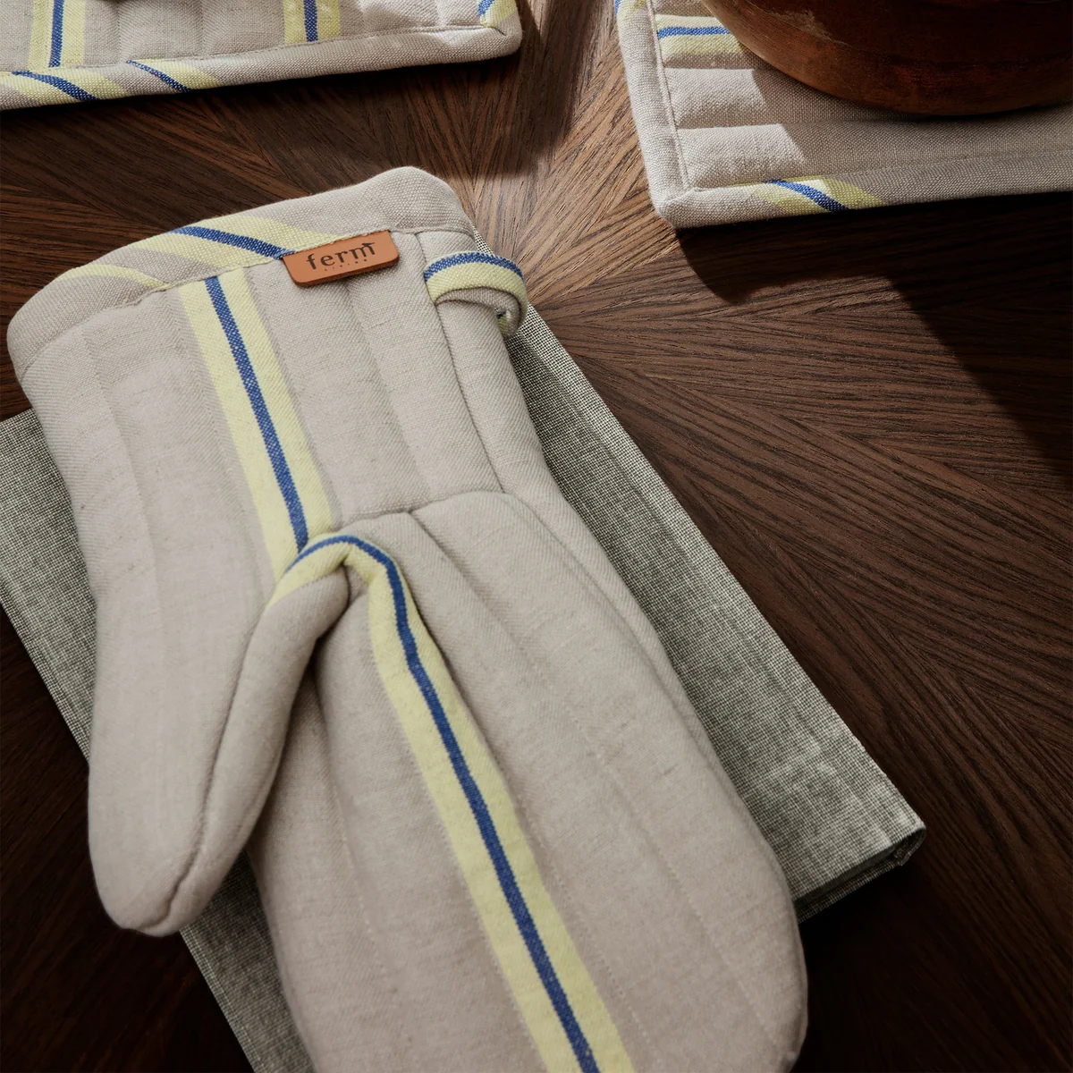 De Hale ovenwanten van Ferm Living beschermen je vingers op een stijlvolle manier tegen hete potten en pannen. Ze zijn gevuld met gerecycled polyester en hebben een lus zodat ze bijvoorbeeld aan een muurhaak in de keuken kunnen worden gehangen.