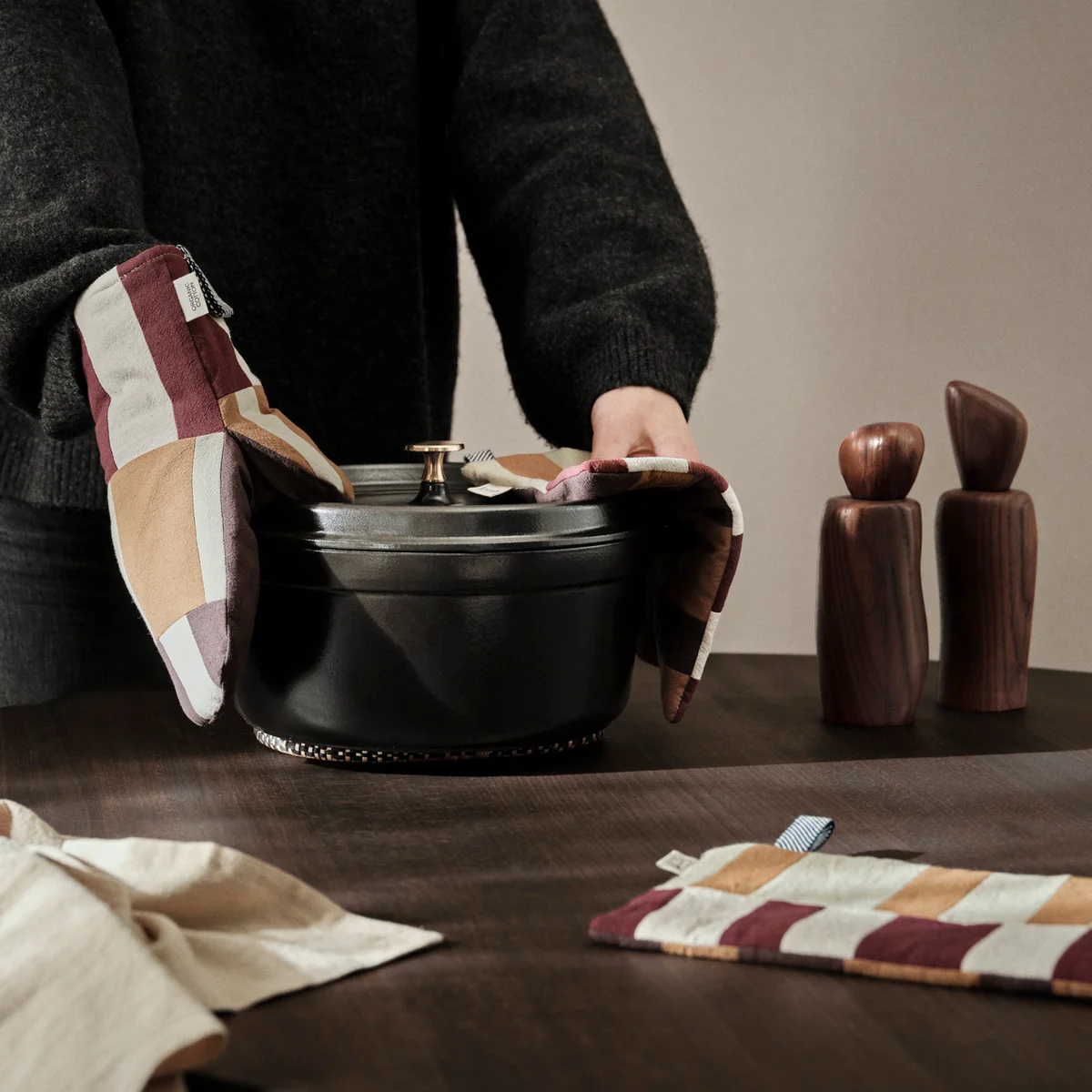 De Section ovenwant van Ferm Living is een stijlvolle en functionele aanvulling op je keukengerei. Deze met zorg en oog voor detail gemaakte ovenwant biedt zowel bescherming als stijl tijdens het koken.