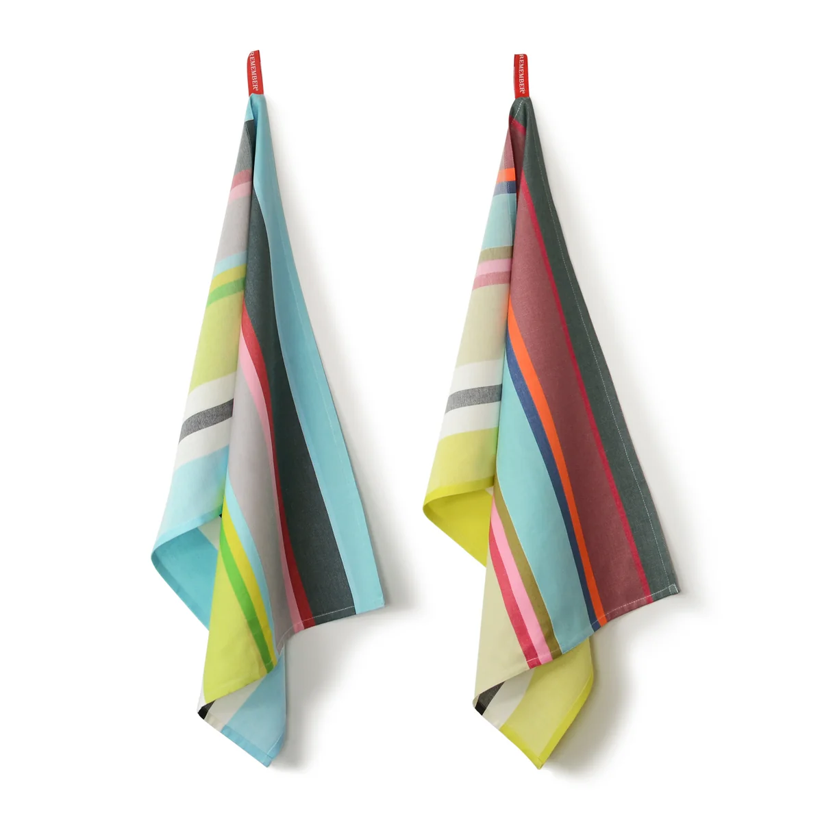 De "good mood theedoeken", zoals Remember ze noemt, zijn er in de kenmerkende stijl van de Duitse fabrikant: met abstracte grafische patronen en sterke kleuren voegen ze een vleugje kleur toe aan elke keuken. Er zitten twee verschillende keukendoeken in een set die elkaar perfect aanvullen.