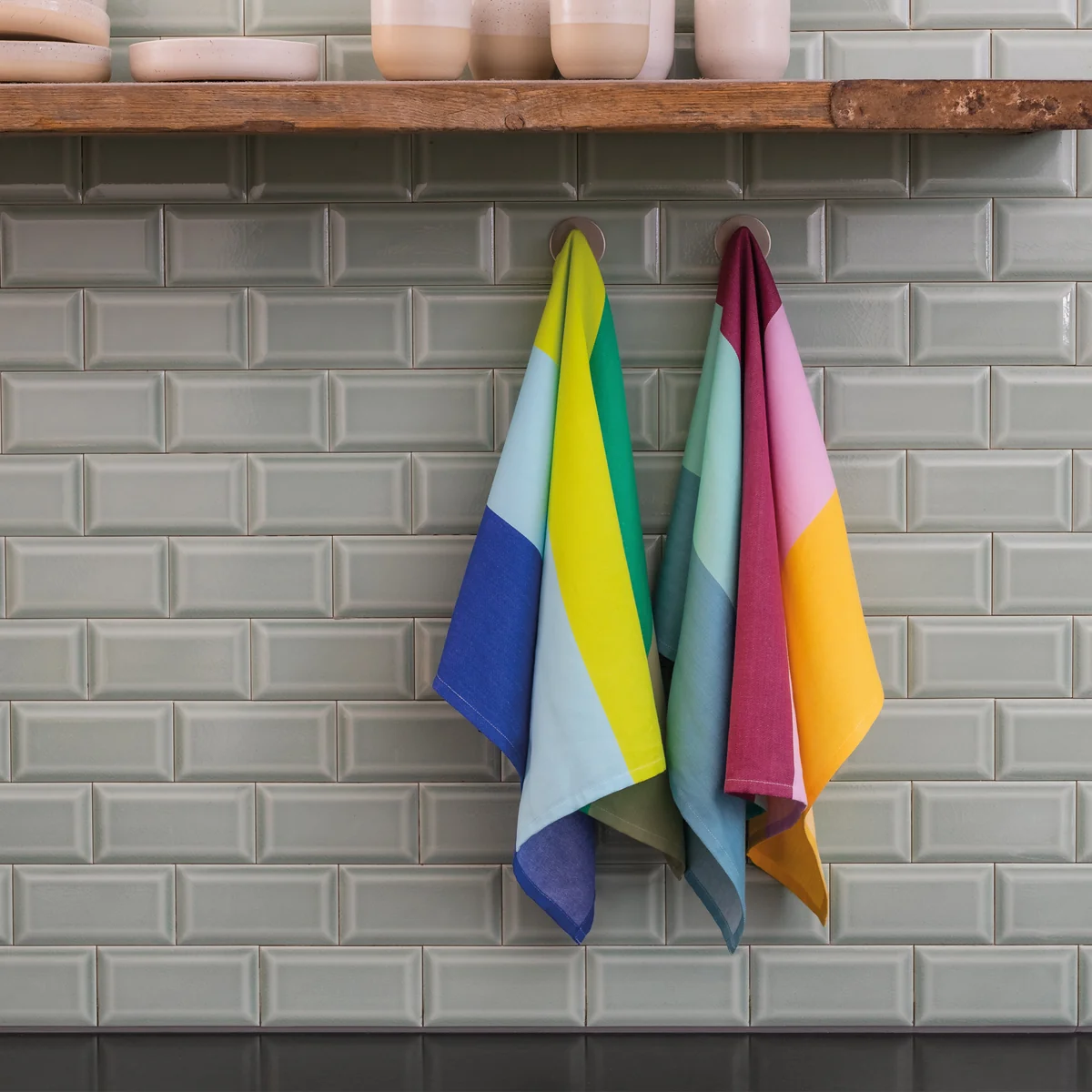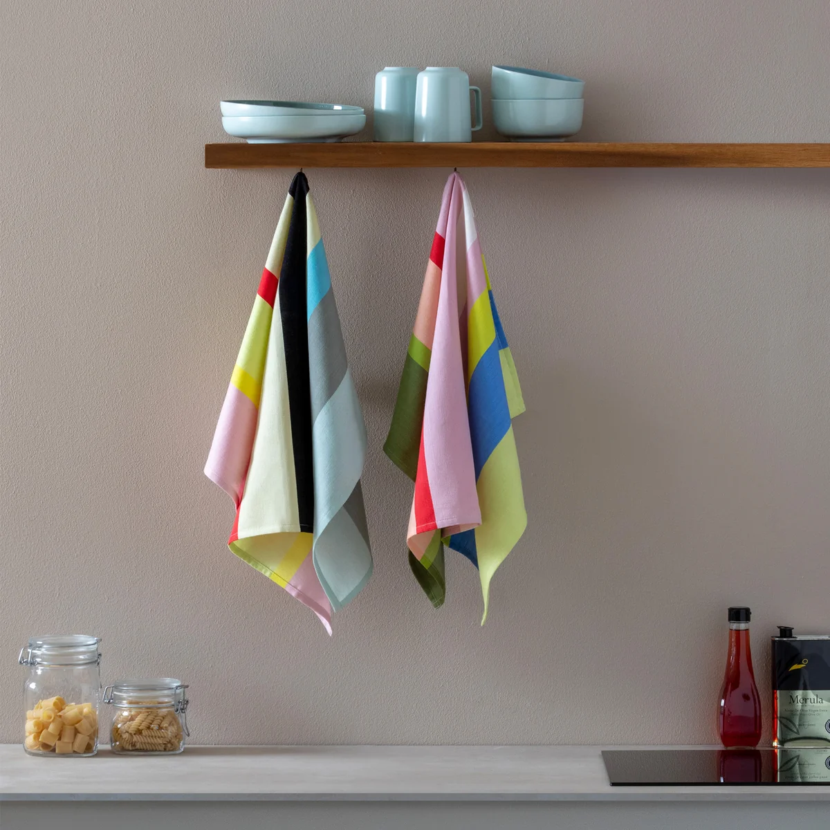Een vleugje kleur in de keuken: met de theedoeken van Remember wordt zelfs afwassen leuk.