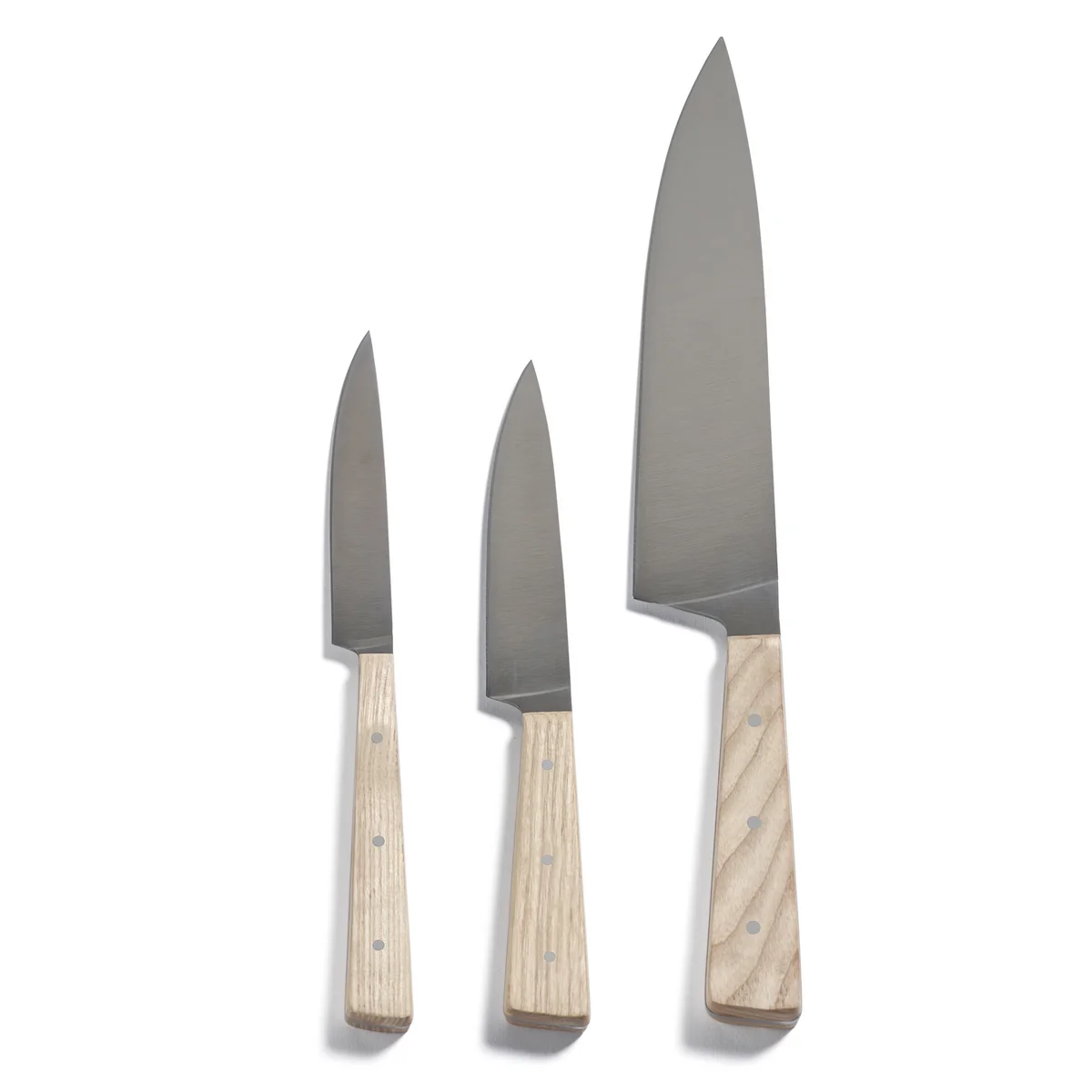 De collectie messen, gemaakt met precisie Dune combineert functionaliteit en vakmanschap. De handgrepen van rijk, gestructureerd hout zijn een bewijs van de schoonheid van de natuur en contrasteren met de gladde, utilitaire stalen lemmeten. Deze combinatie van contrasterende materialen verbetert niet alleen je eetervaring, maar voegt ook een vleugje verfijning toe aan je tafelsetting.