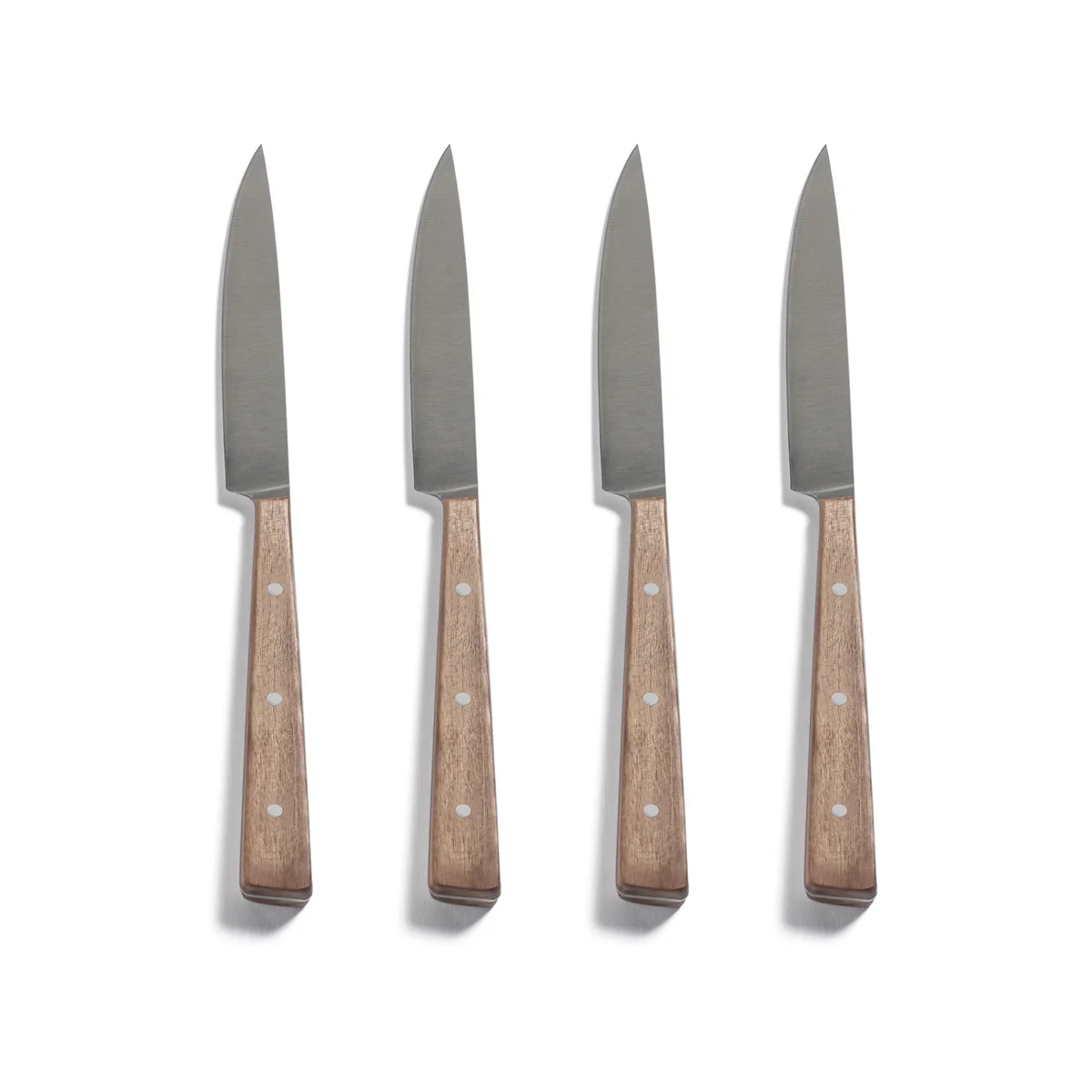 De Dune steakmessen van Kelly Wearstler voor Serax zijn de perfecte combinatie van vorm en functie voor veeleisende fijnproevers. Hun unieke ontwerp, geïnspireerd op de zachte contouren van het duinlandschap, maakt deze steakmessen echte blikvangers op elke tafelsetting. Maar hun ware kracht komt pas tot uiting bij het snijden. De scherpe lemmeten van hoogwaardig roestvrij staal garanderen nauwkeurig snijden van steaks en andere vleesgerechten zonder afbreuk te doen aan de malsheid van het vlees. Het ergonomisch ontworpen handvat ligt prettig in de hand en zorgt ervoor dat snijden een plezier is. De Dune steakmessen combineren esthetiek en prestaties op het hoogste niveau en zijn een onmisbaar stuk gereedschap voor iedereen die het genot van een perfect bereide steak waardeert. Met Kelly Wearstler's kenmerkende stijl zijn deze steakmessen niet alleen praktisch keukengerei, maar ook een uitdrukking van smaak en elegantie in elke culinaire ervaring.