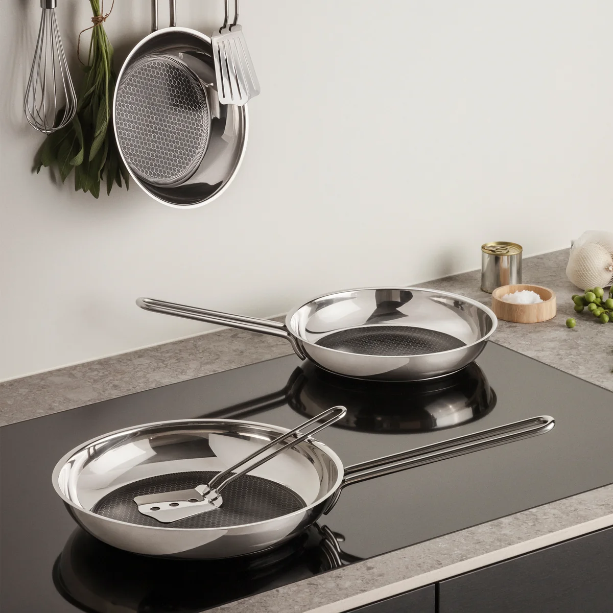 Eva Solo De veelzijdige roestvrijstalen koekenpan van topkwaliteit maakt indruk met een behuizing van 90% gerecycled roestvrij staal, een bijzonder duurzaam en onderhoudsvriendelijk materiaal. De pan heeft een keramische Slip-Let® coating, die wordt beschermd door een innovatief patroon. Dit oppervlaktepatroon bestaat uit kleine roestvrijstalen hobbels die de coating beschermen. Het ontwerp combineert de robuustheid van roestvrij staal met de praktische hanteerbaarheid van Slip-Let®. Het resultaat is een pan met uitstekende antiaanbakeigenschappen die bestand is tegen metalen kookgerei, de vaatwasser en temperaturen tot 400 °C. Geschikt voor alle kookplaten.