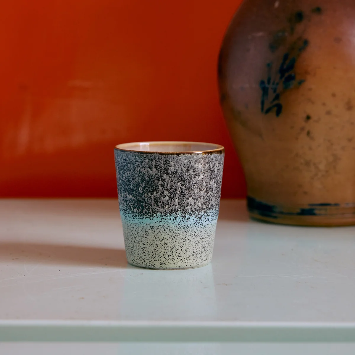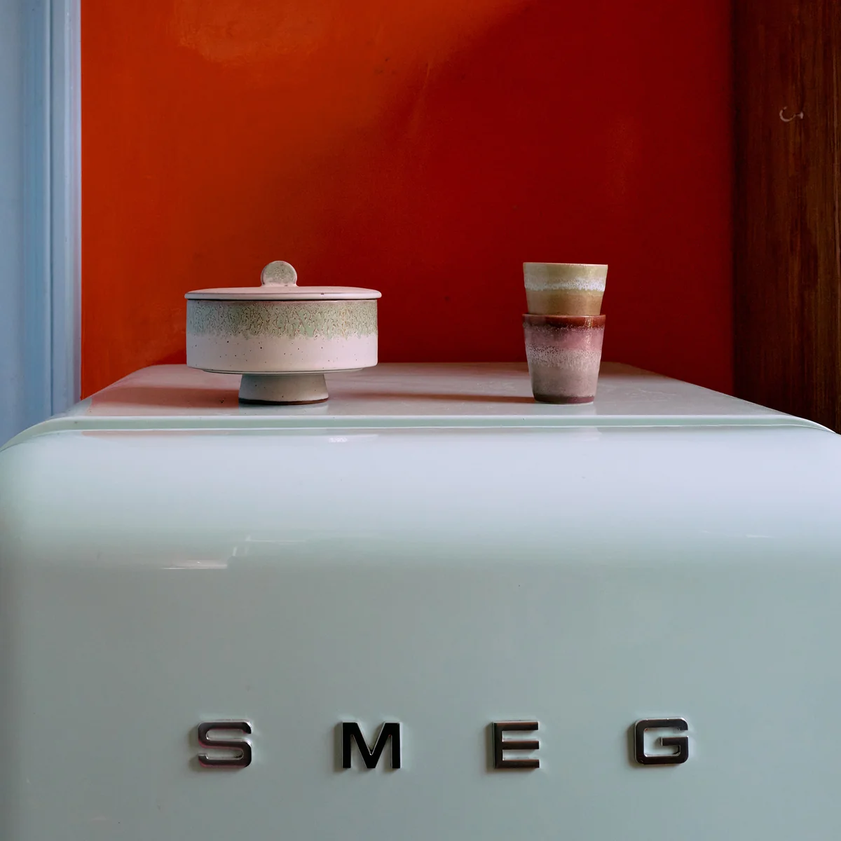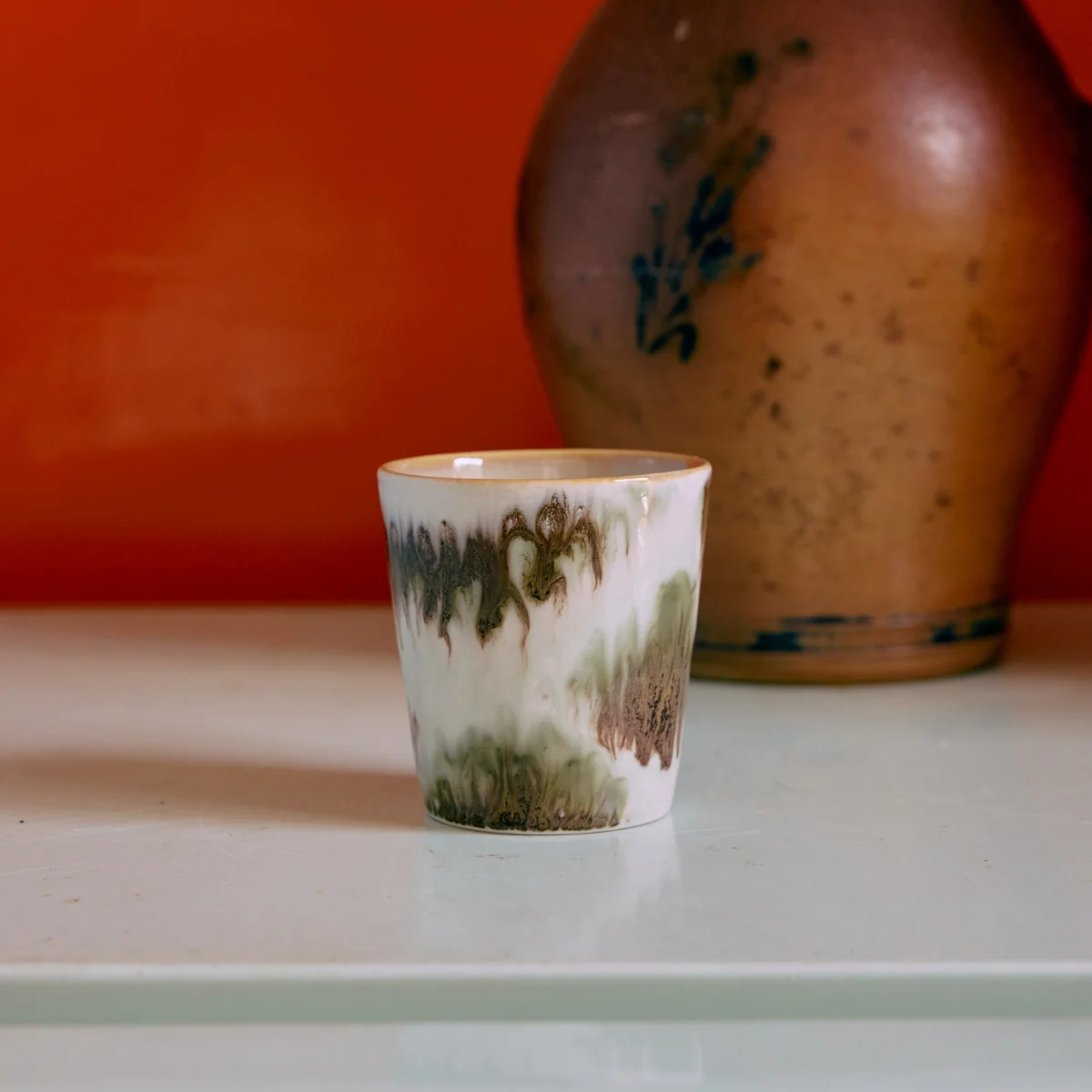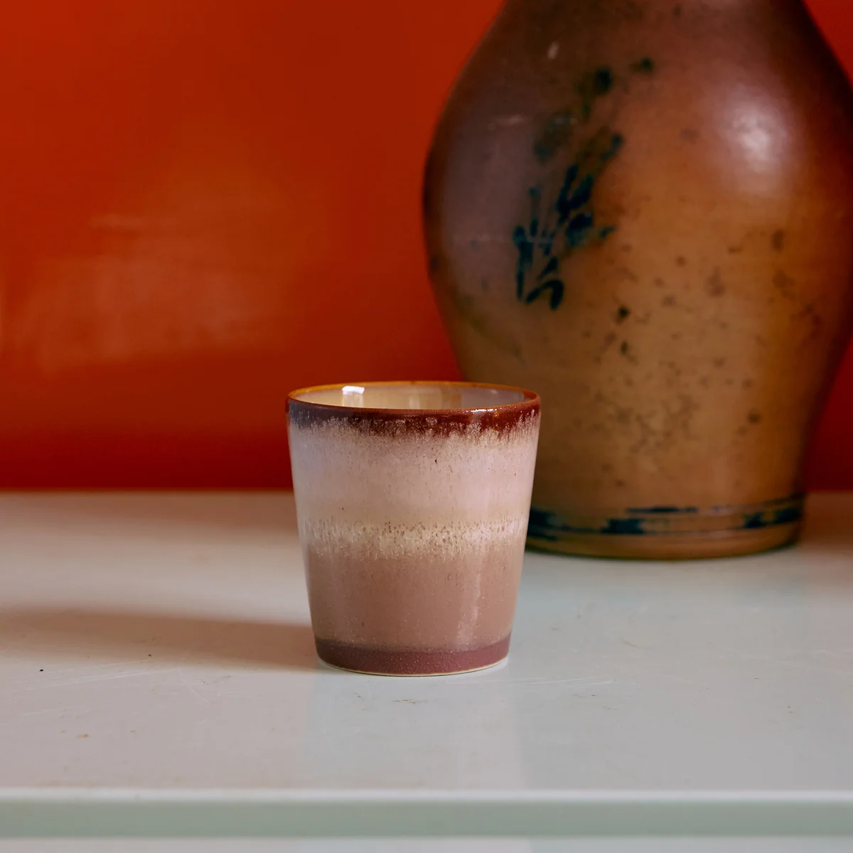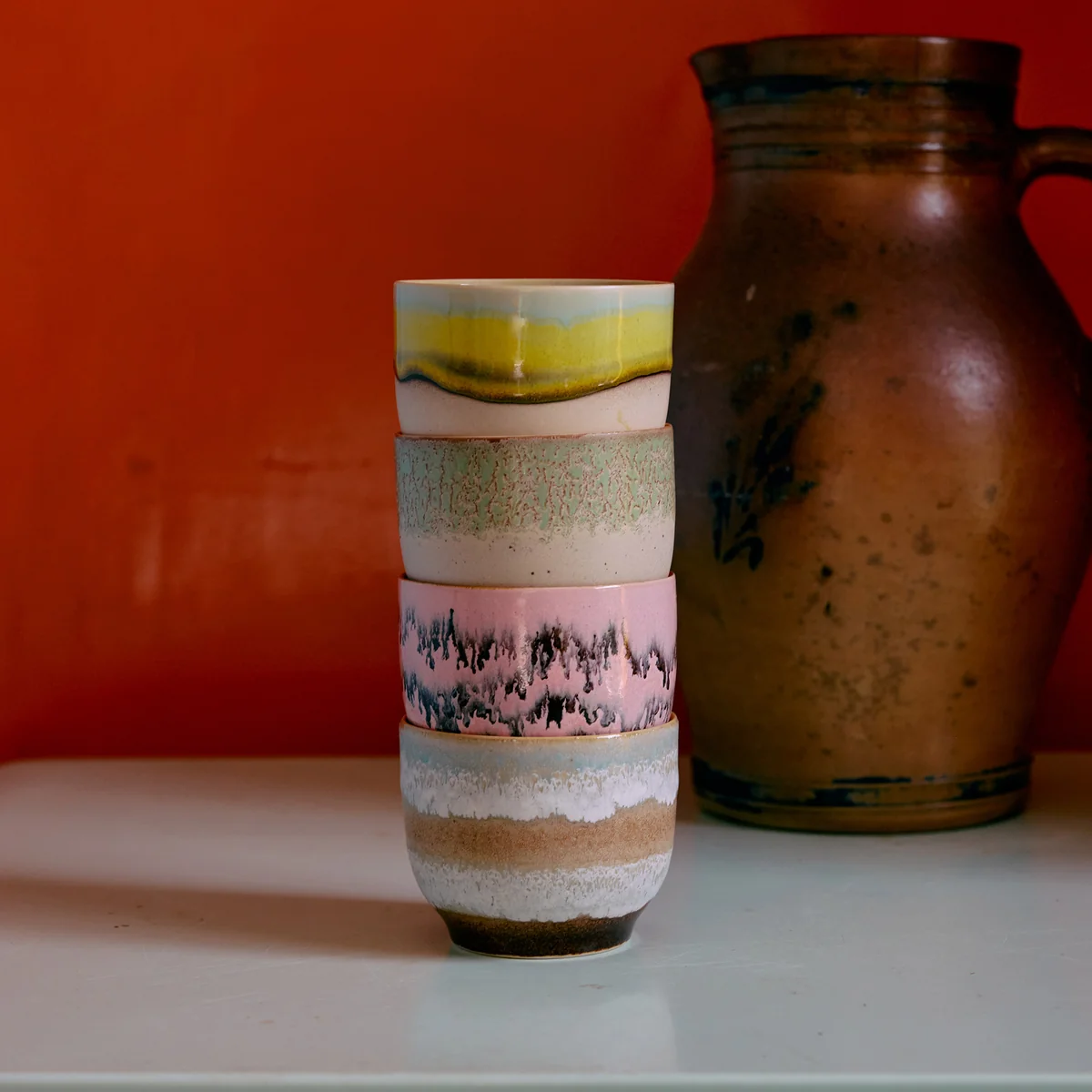 De 70's koffiemokken van HKliving zijn een reden tot vreugde voor zowel jarenlange verzamelaars als nieuwe ontdekkers: de mokken zijn gemaakt van steengoed en zijn net zo uniek als iemands vingerafdruk omdat ze met de hand worden gemaakt en geglazuurd. Zo ontstaan de prachtige patronen en kleuren, die elke eettafel en servieskast individueel verfraaien.