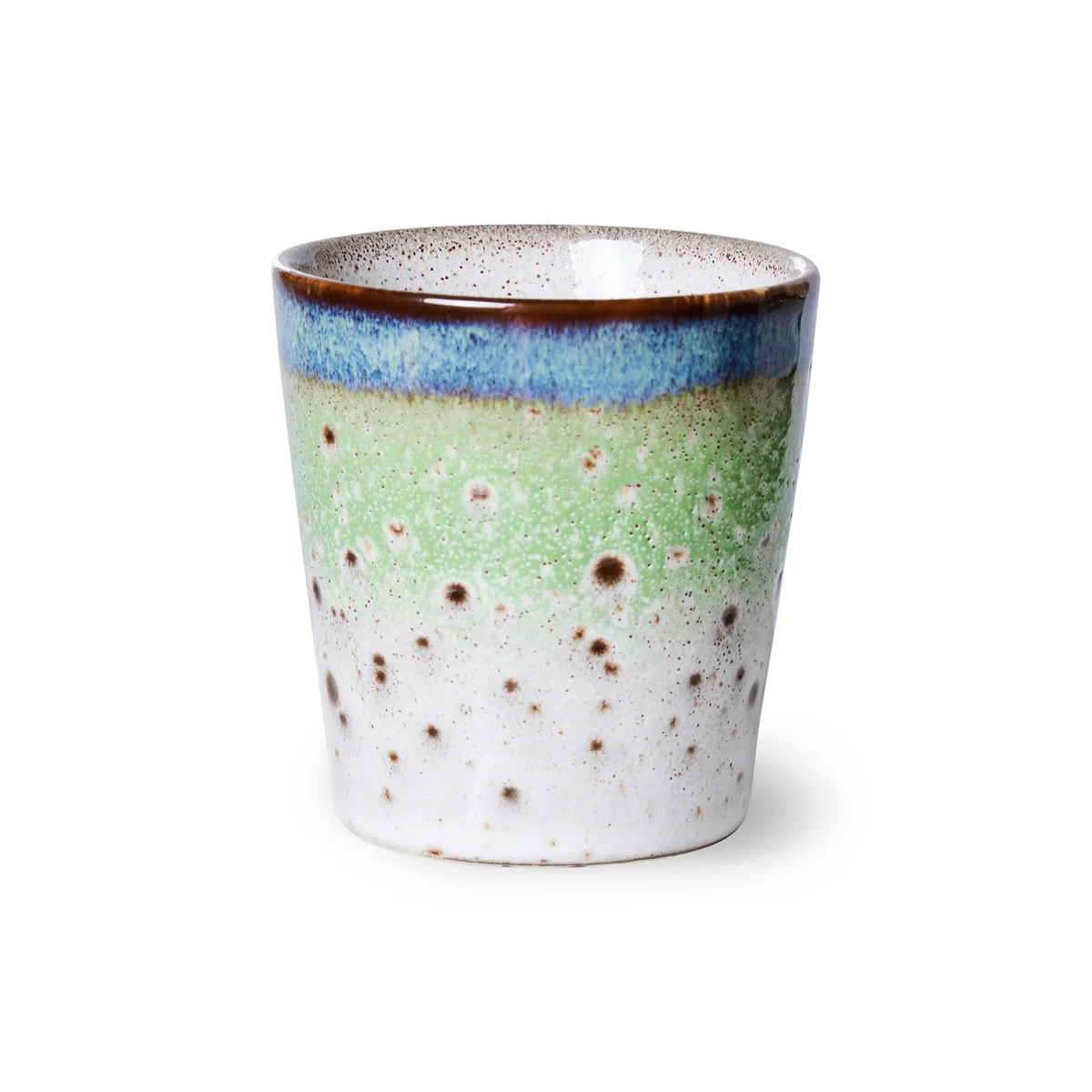 De 70's koffiemokken van HKliving zijn een reden tot vreugde voor zowel jarenlange verzamelaars als nieuwe ontdekkers: de mokken zijn gemaakt van steengoed en zijn net zo uniek als iemands vingerafdruk omdat ze met de hand worden gemaakt en geglazuurd. Zo ontstaan de prachtige patronen en kleuren, die elke eettafel en servieskast individueel verfraaien.