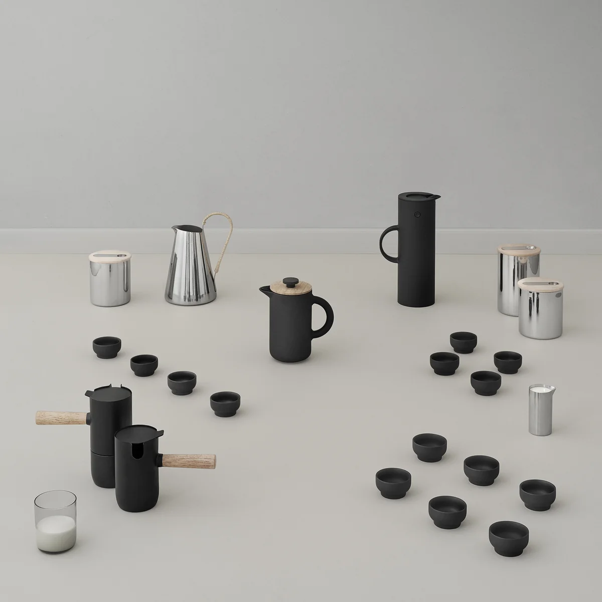 Als onderdeel van de Collar collectie kan de espressomachine worden aangevuld met de bijpassende koffiemolen, melkkan en ander koffieservies.