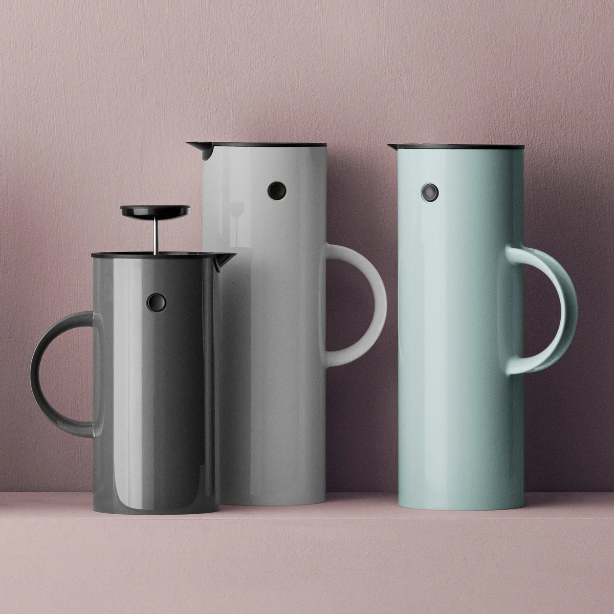 De klassieke thermokan van Erik Magnussen kreeg een nieuwe functie. Het moderne design is nu verkrijgbaar als koffiezetapparaat in drie verschillende versies - staal, zwart of wit kunststof.