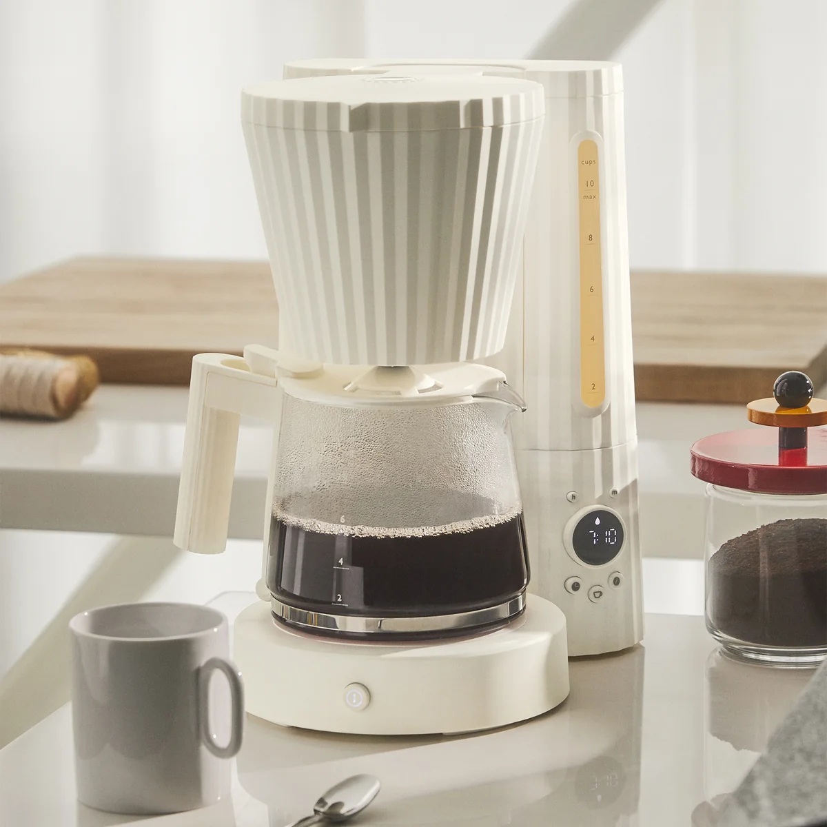 Het Plissé filterkoffiezetapparaat van Alessi combineert modern design met traditionele koffiekunst en zorgt voor een uitzonderlijke koffie-ervaring.