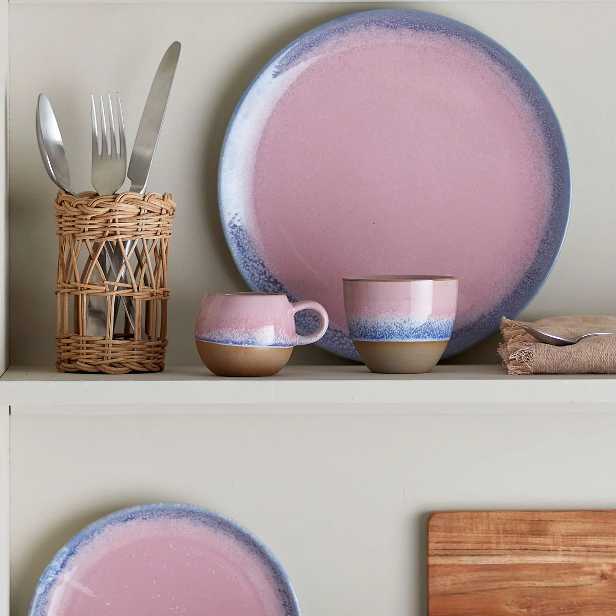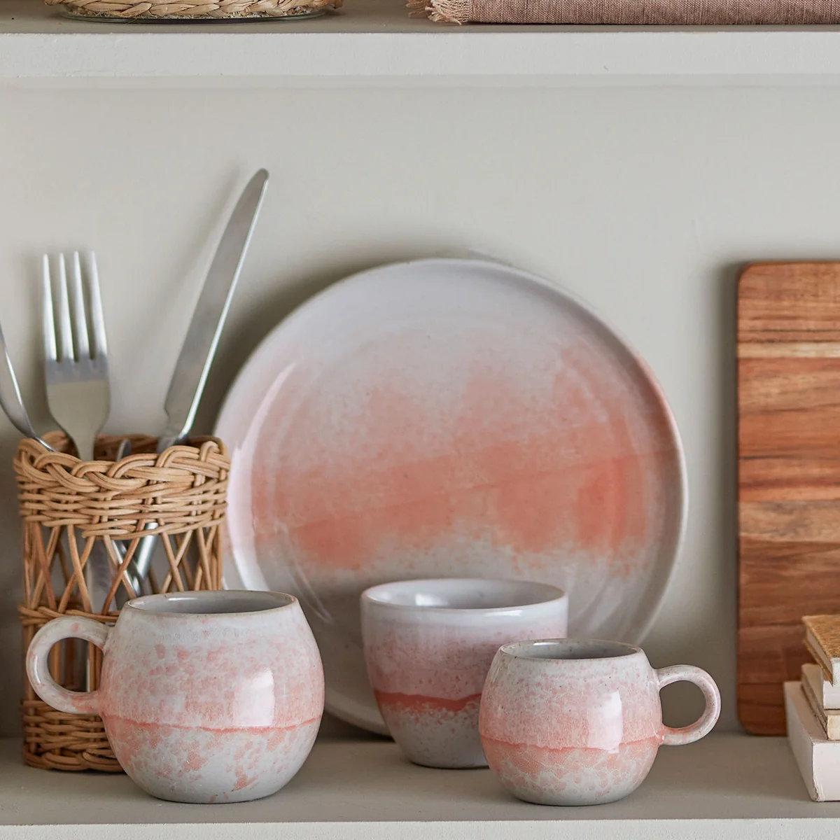 - Hoogwaardig steengoed met een delicaat glazuur in oranje en roze tinten