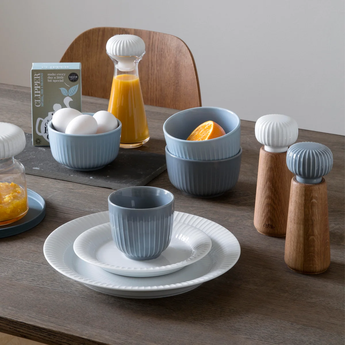 Met een kruidenlichaam van hout en elegante keramische koppen - passend bij zout en peper - zijn de Kähler Design kruidenmolens de ideale aanvulling op de serviesserie van het Hammershøi collectie. De groeven zijn niet alleen een uitgezocht optisch detail, maar de structuur vergemakkelijkt de eenvoudige draai aan de knop, waardoor zout en peper in een oogwenk worden gemalen.