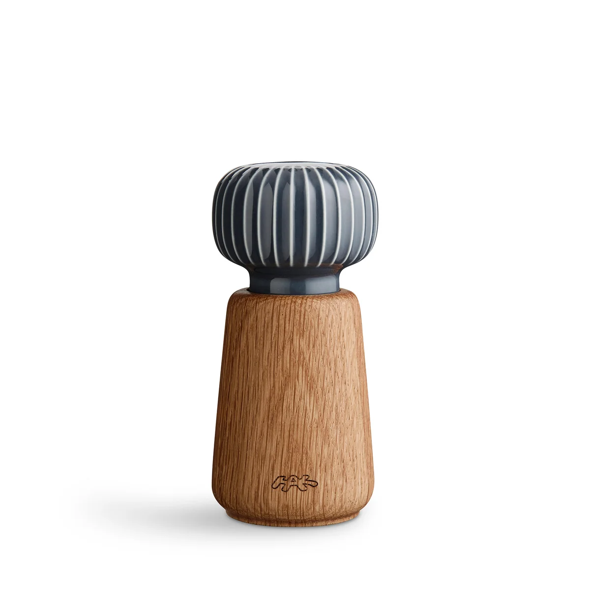 Het zout en peper vaatje van de Hammershøi -collectie van Kähler Design inspireren met een elegante materiaalmix van keramiek en hout. Het Scandinavische ontwerp van Hans-Christian Bauer is geïnspireerd op de traditionele ontwerpen van Svend Hammershøi . De kruidenmolens maken deel uit van een hele serviesreeks die individueel kan worden gecombineerd.